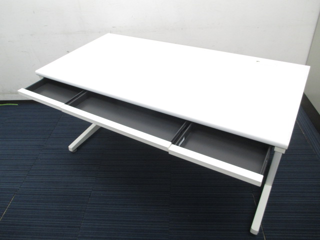 【在庫入替品】【ワークスペース広々!幅1400㎜のホワイトカラーの平机!】■オカムラ(okamura)製 ヴィラージュ(VILLAGE)デスク 平机 引き出し付き W1400×D700mm ■ホワイト【T12】