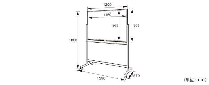 横幅1200mmの両面無地タイプのホワイトボードです。