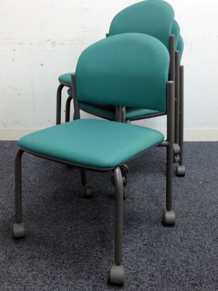 【1セット限定!】ライトグリーン色で爽やかなスタッキングチェアー入荷しました!キャスター付きです♪- 名古屋千種店