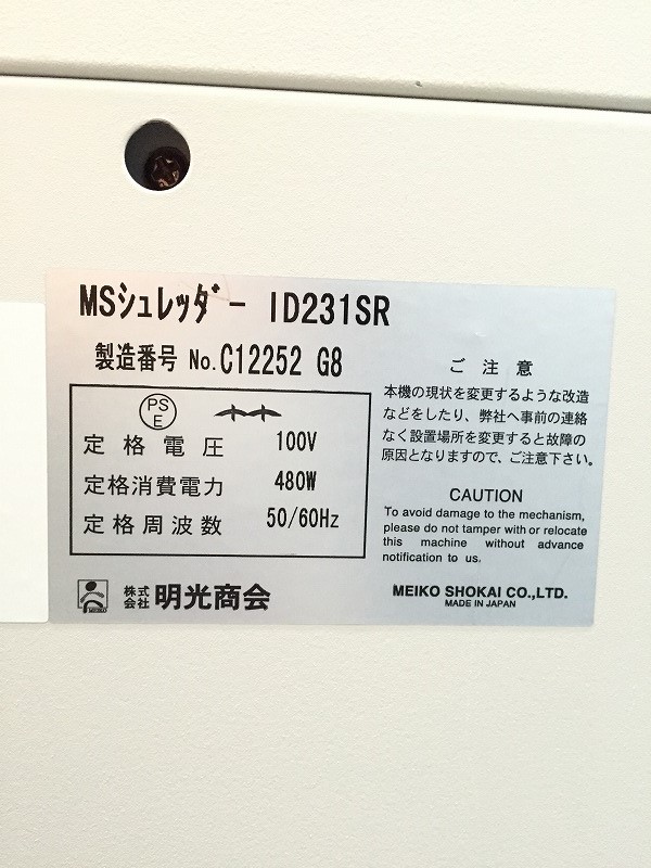 【中古】 MS-ID231SR 明光商会 シュレッダー 198376