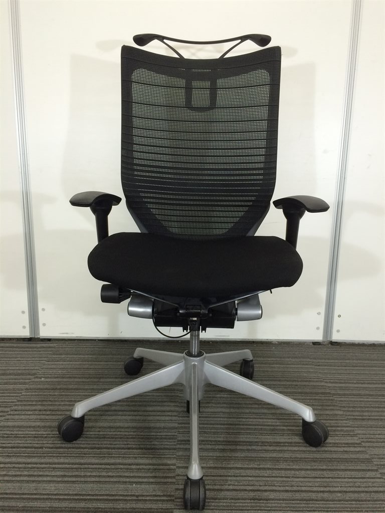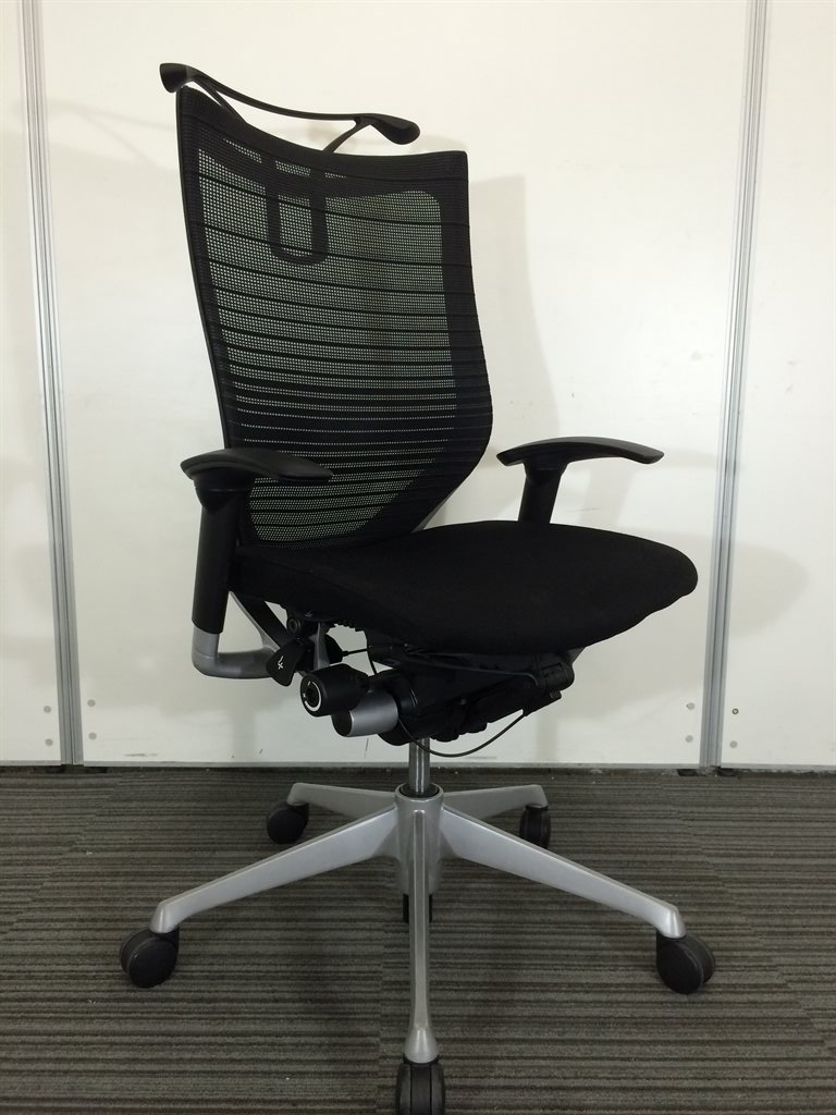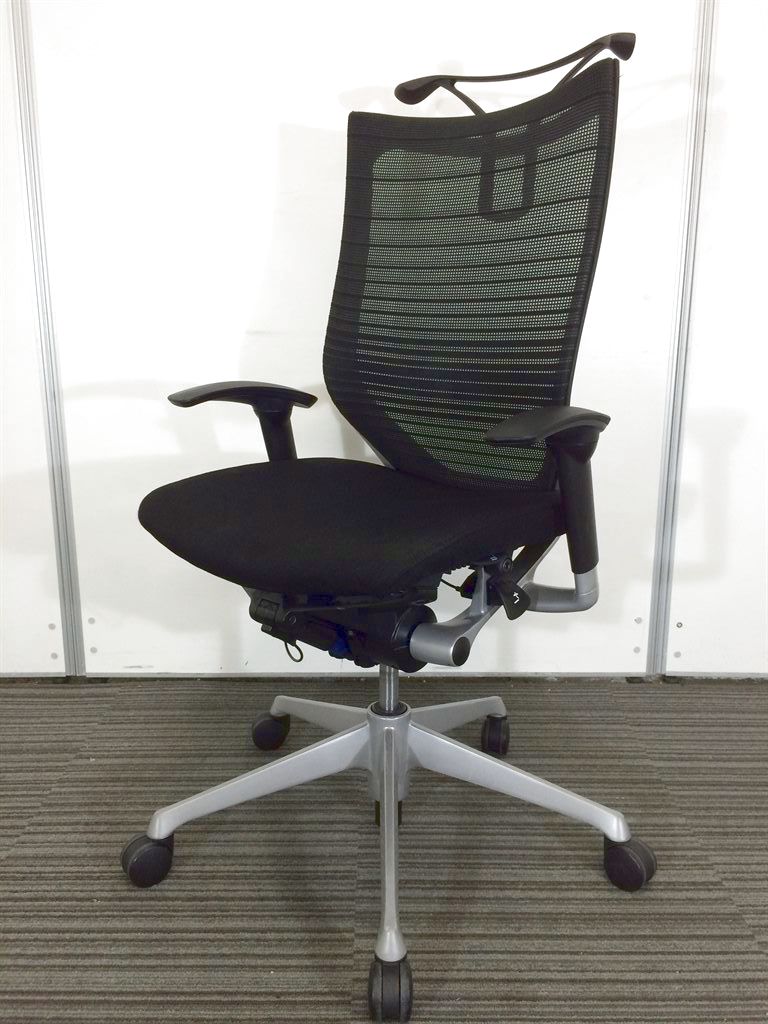 【長時間の着座でも疲れにくい!ベストなポジションが得られる先進設計!】■オカムラ バロンチェア 肘付 ブラック ハイバック シルバーフレーム ■良い椅子は腰を守る投資です!【Okamura Baron】