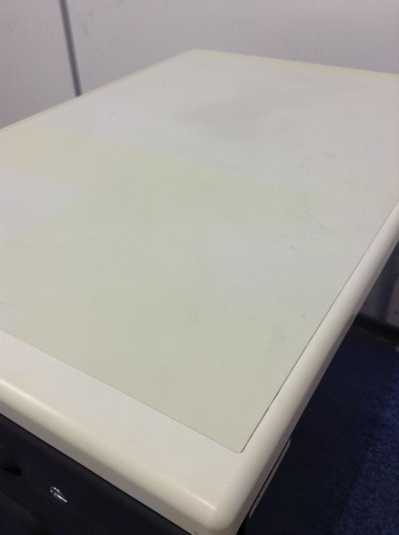 - あり黄ばみ・変色が広い範囲にうっすらある、または濃い黄ばみ・変色が一部ある。(例、天板、正面、背後、サイド部分にある。)