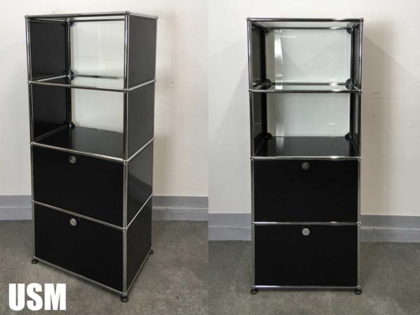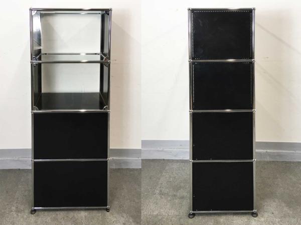 USMハラー 1列4段 キャビネット 下2段ドロップダウン x 上2段オープンブラック- デザイナーズ家具センター