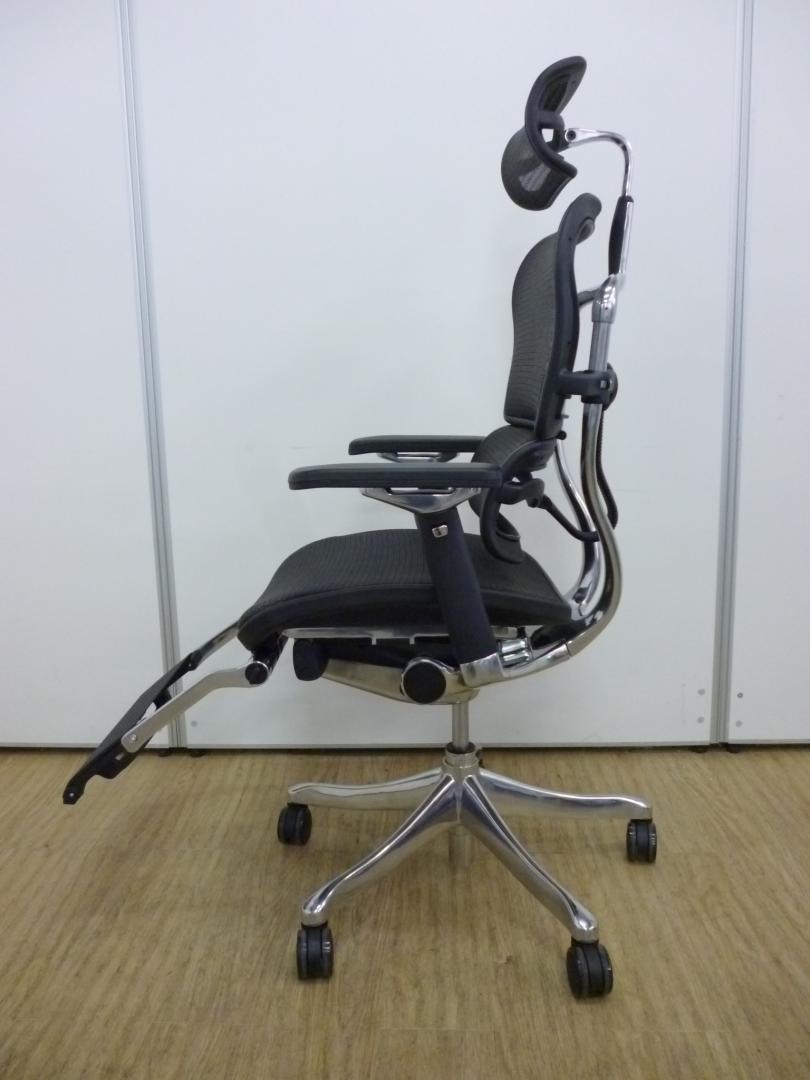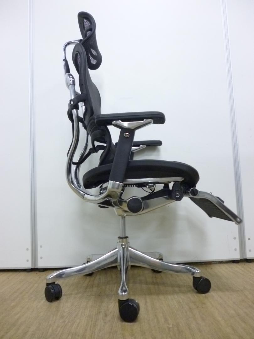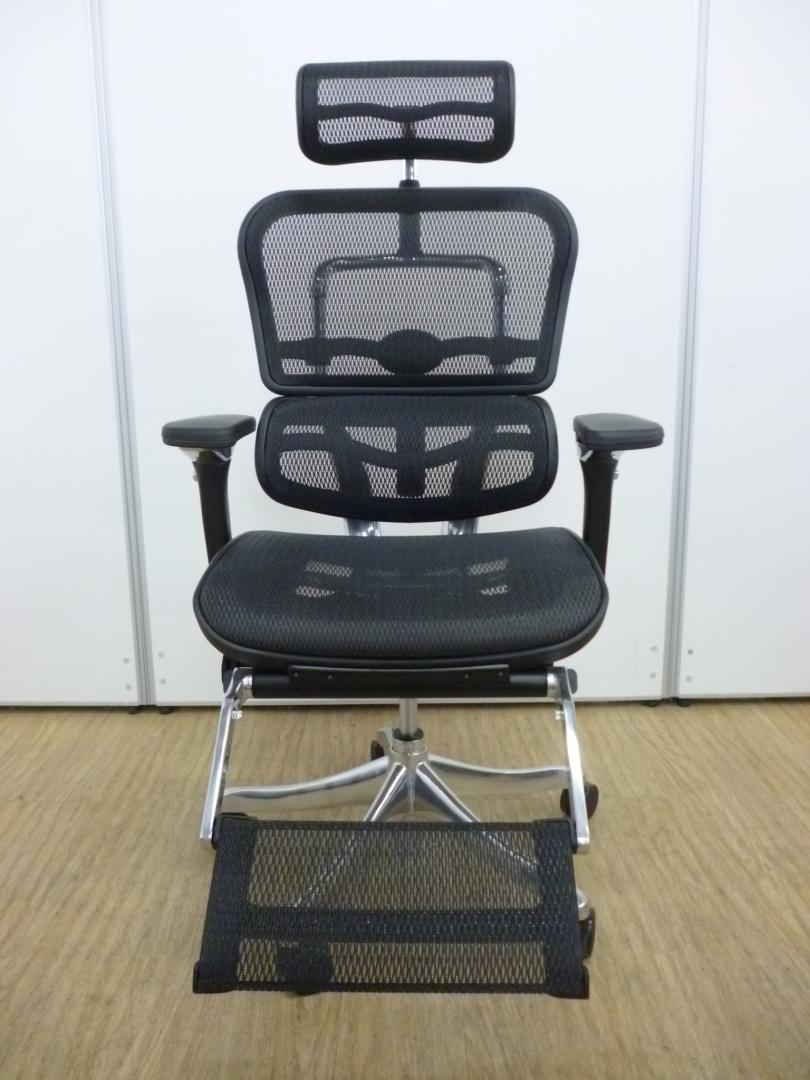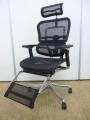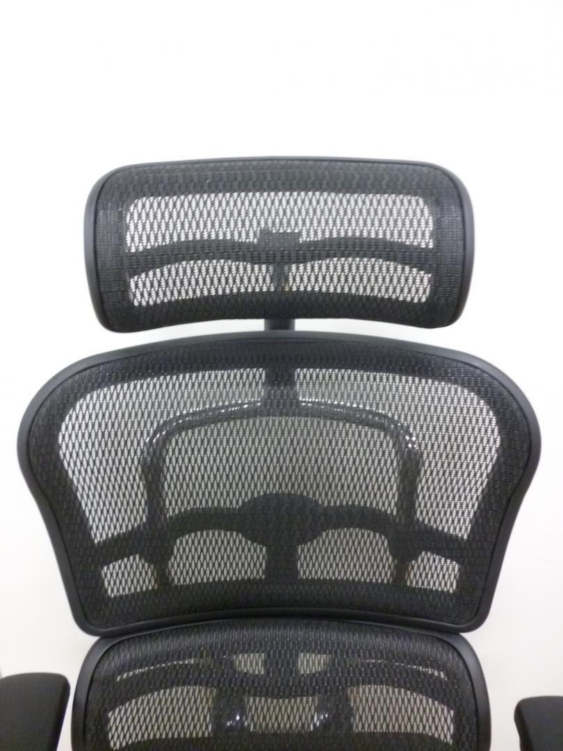 【限定1脚】中古では珍しいヘッドレスト付き ■エルゴヒューマンプロ 大型独立ランバーサポート ヘッドレストつき オットマンつき 可動肘 ブラック メッシュチェア