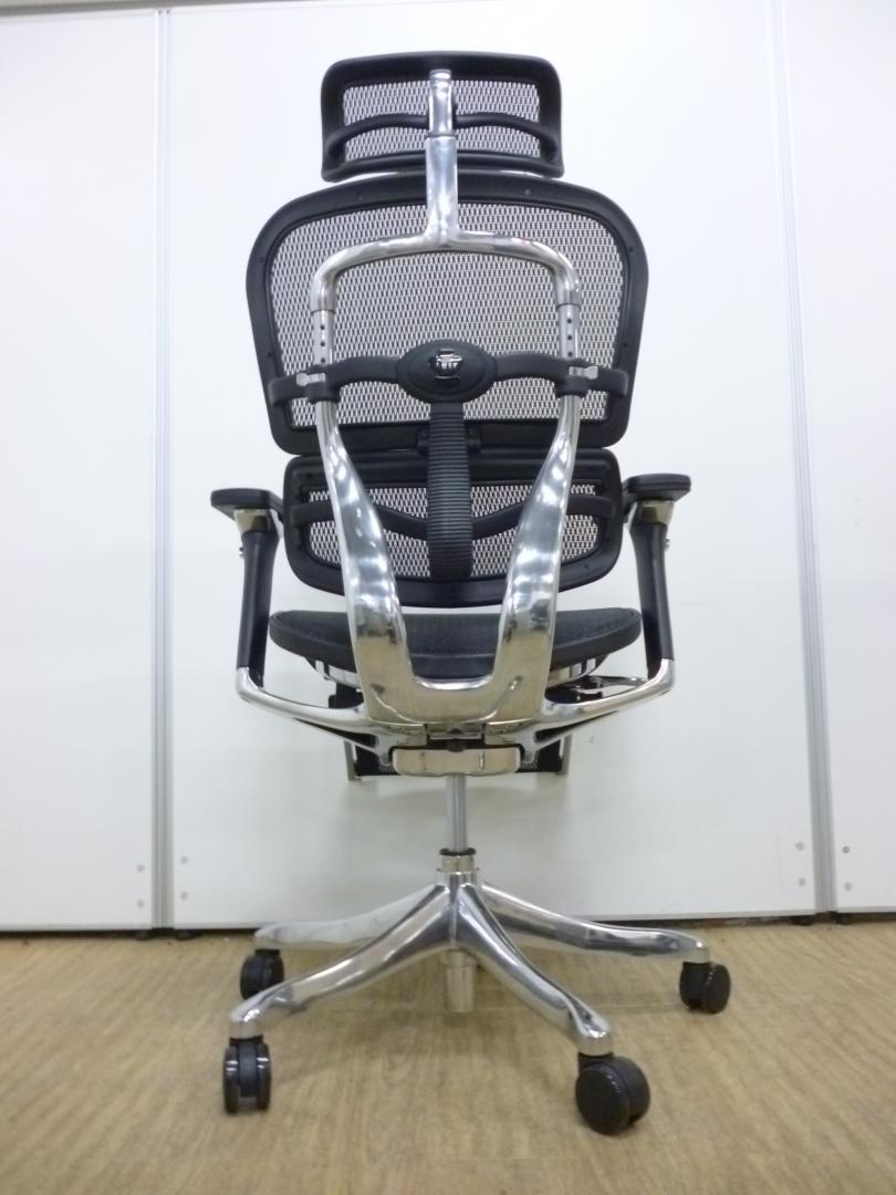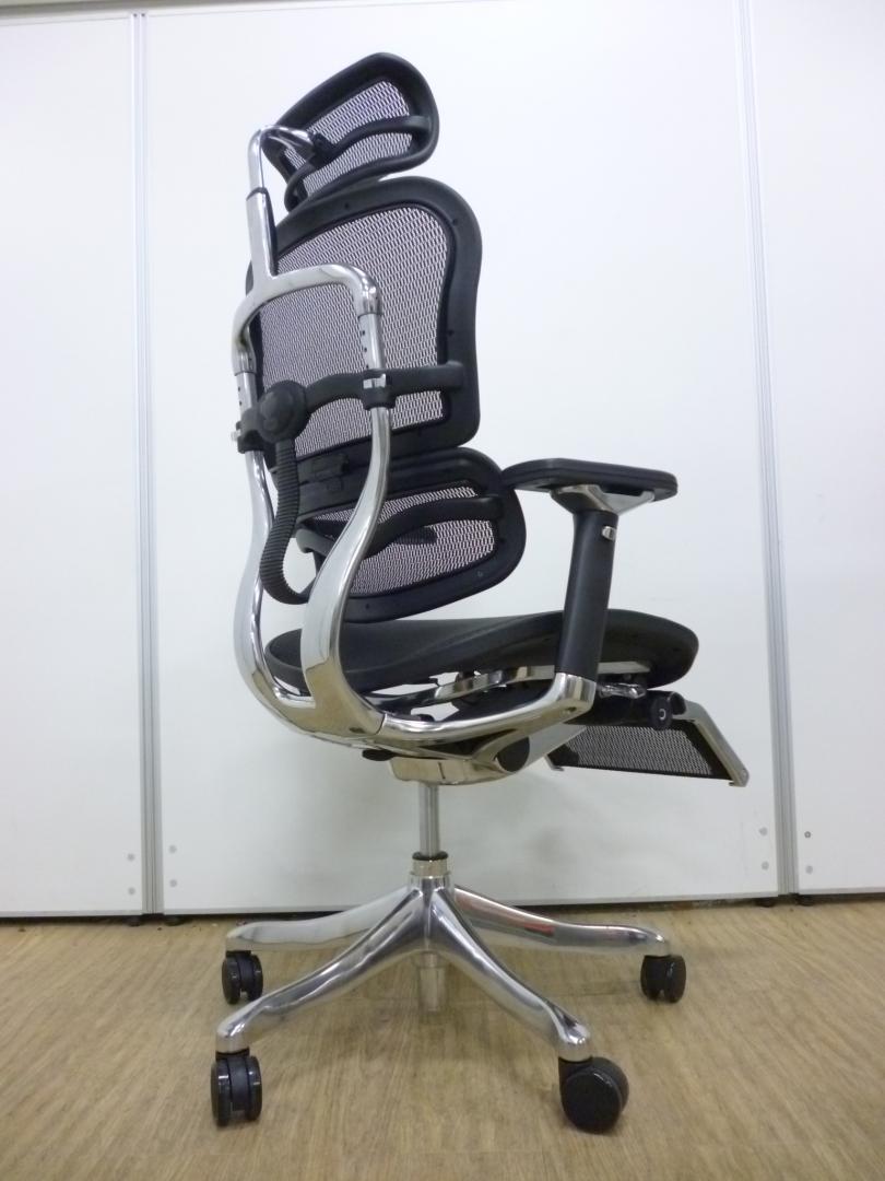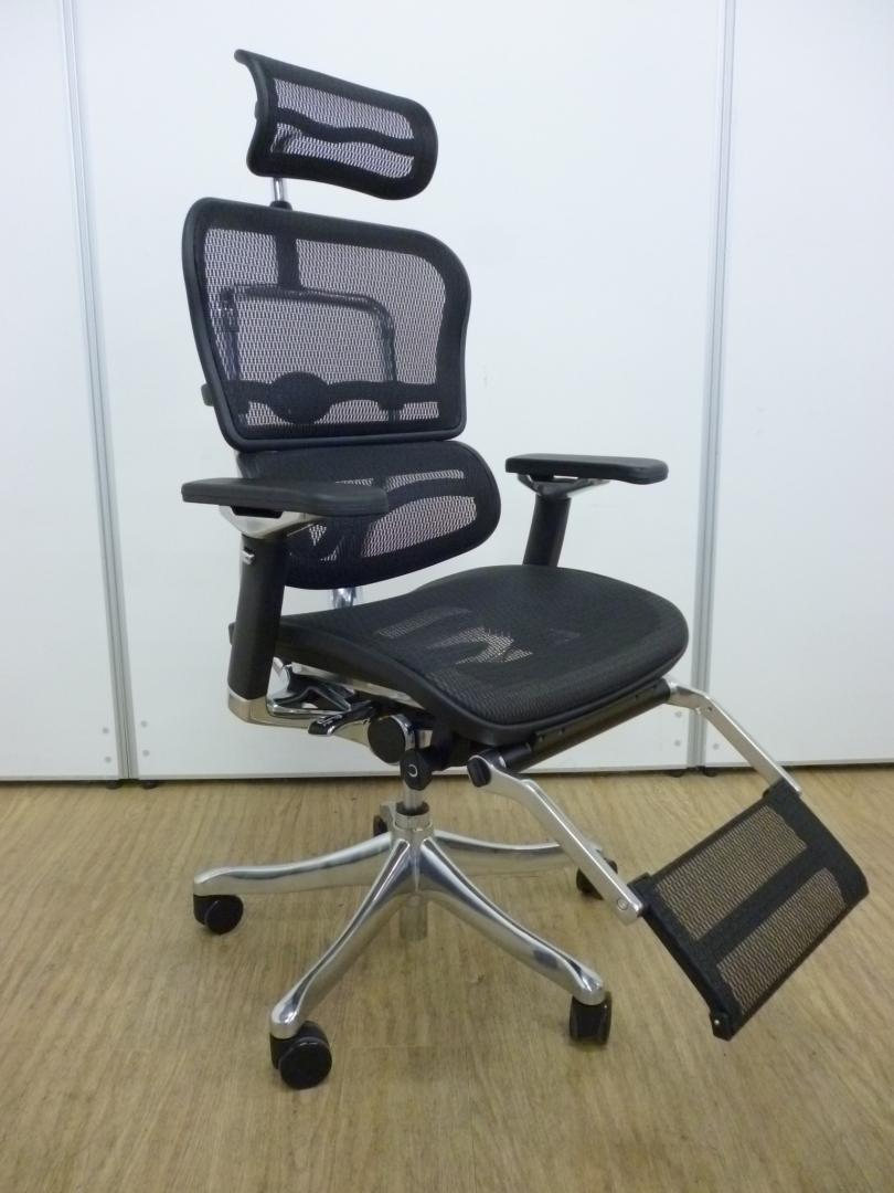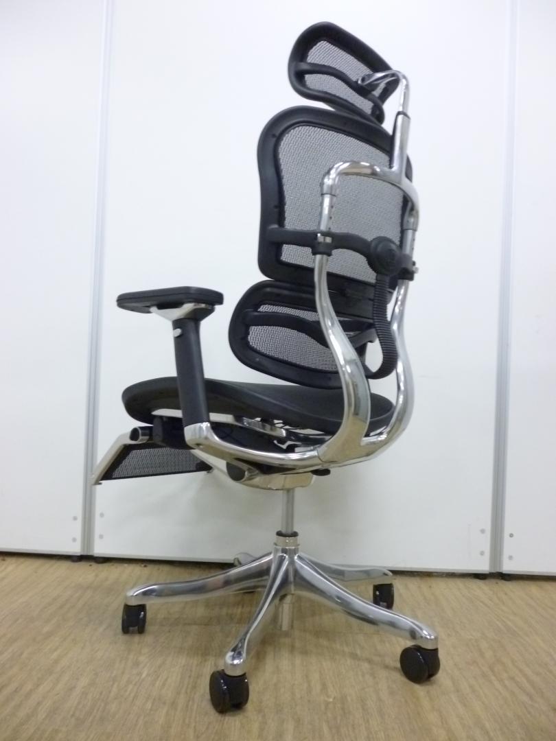 【限定1脚】中古では珍しいヘッドレスト付き ■エルゴヒューマンプロ 大型独立ランバーサポート ヘッドレストつき オットマンつき 可動肘 ブラック メッシュチェア