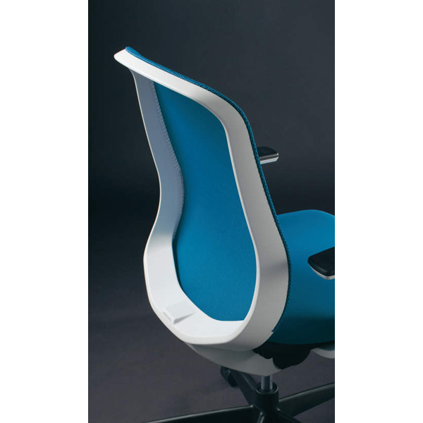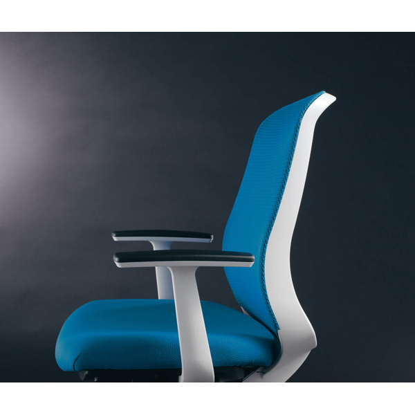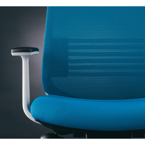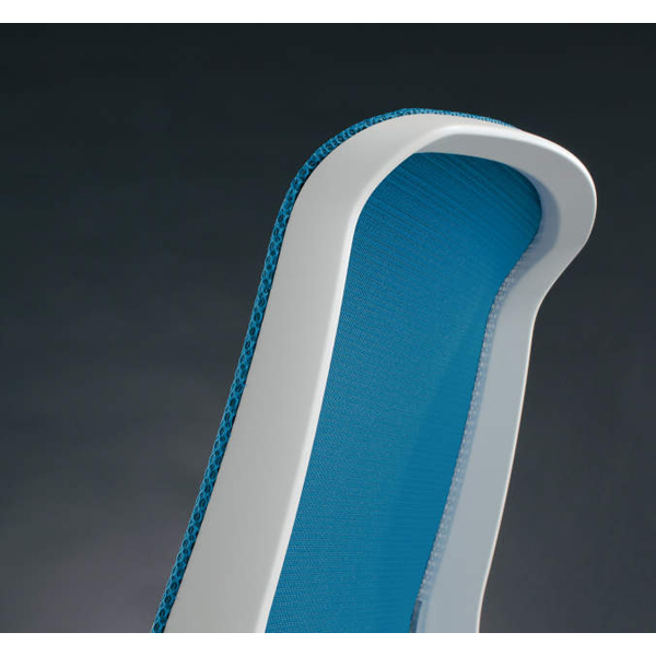 背もたれがメッシュのチェアは、構造上、外枠となるフレームが存在します。小さめのメッシュチェアは背中にフレームが当たったり、メッシュの弾性を十分に得ることができないので、一般にメッシュチェアは大型になりがちです。しかし、シロッコチェアは、フレームを横ではなく縦方向に厚くしたバーチカルフレームで強度を確保しており、 小さめのボディでありながらメッシュ面が広く作られています。
