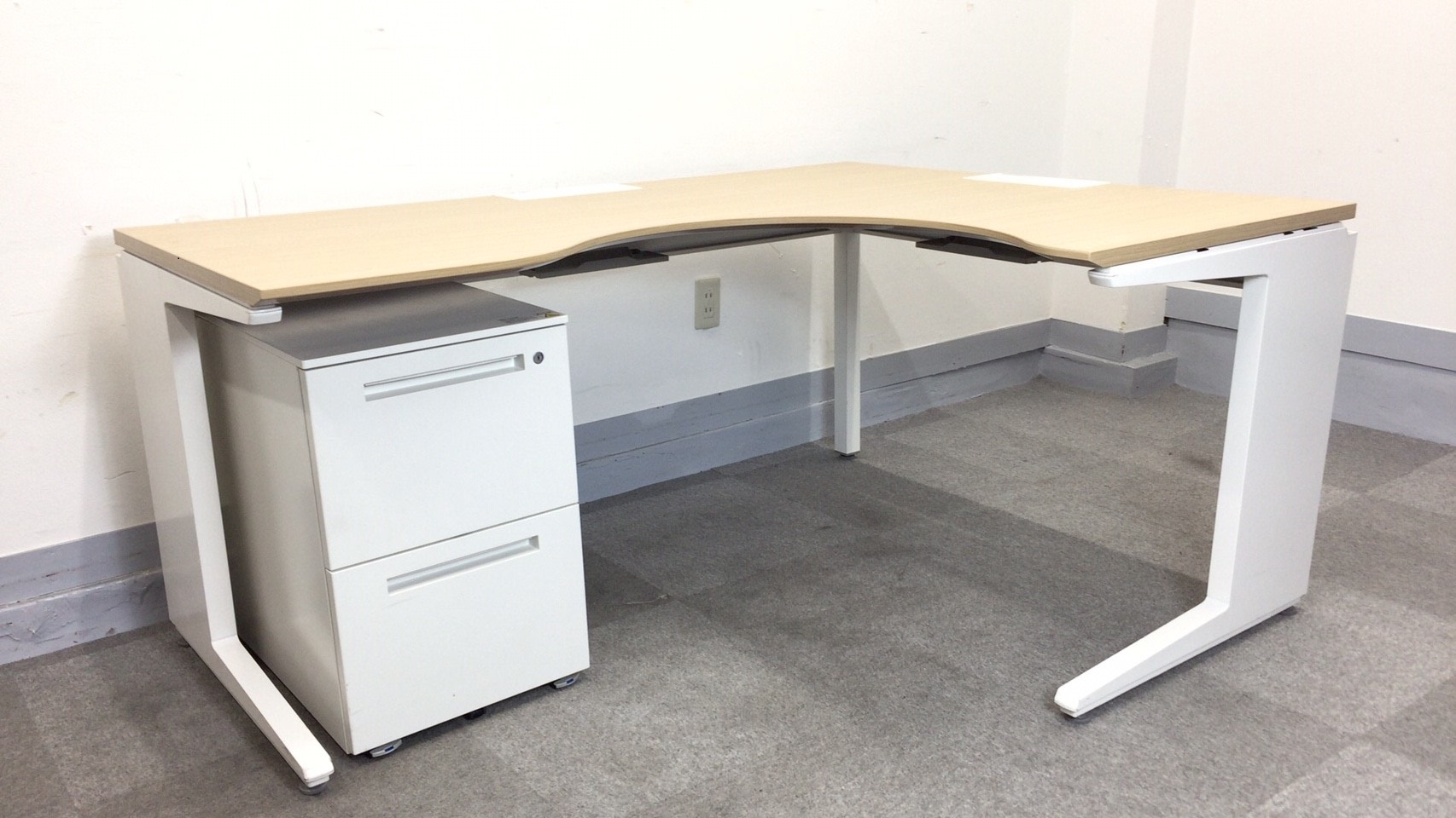 【KS】[通常単品価格44,000円がセットでお買い得!][マネジメントクラスに最適]L字デスク(右) 幅1600mm & イトーキ製 2段ワゴン キャスター付き- 茨城南店
