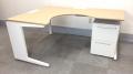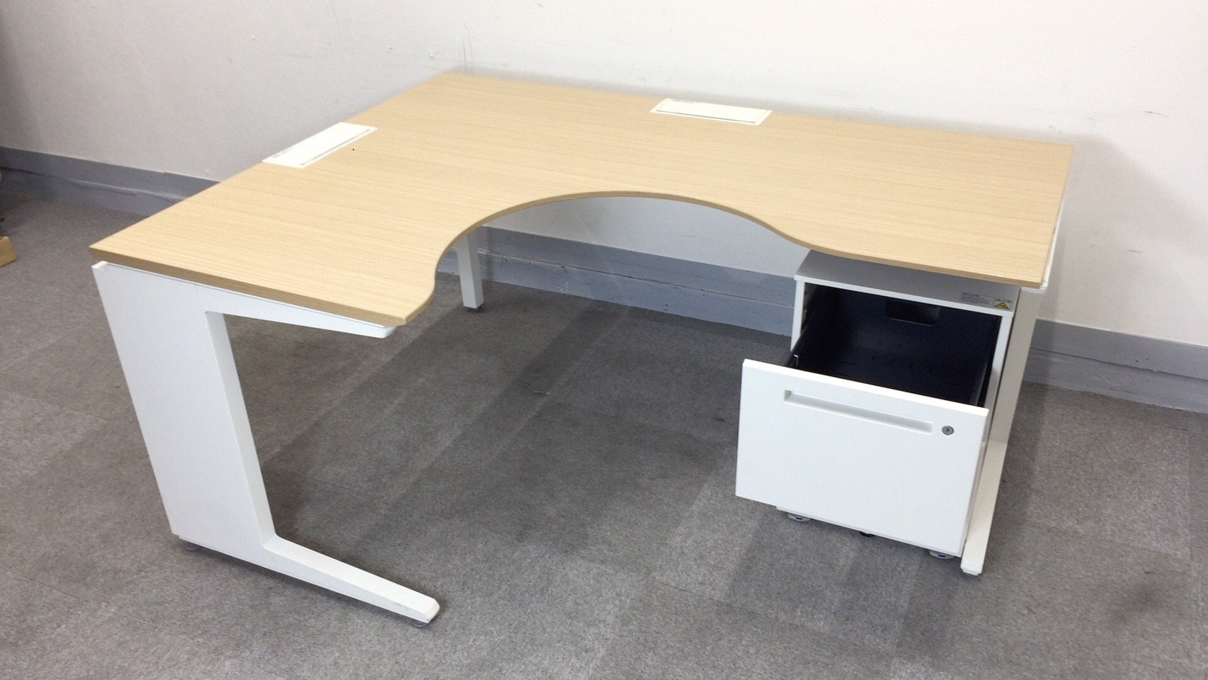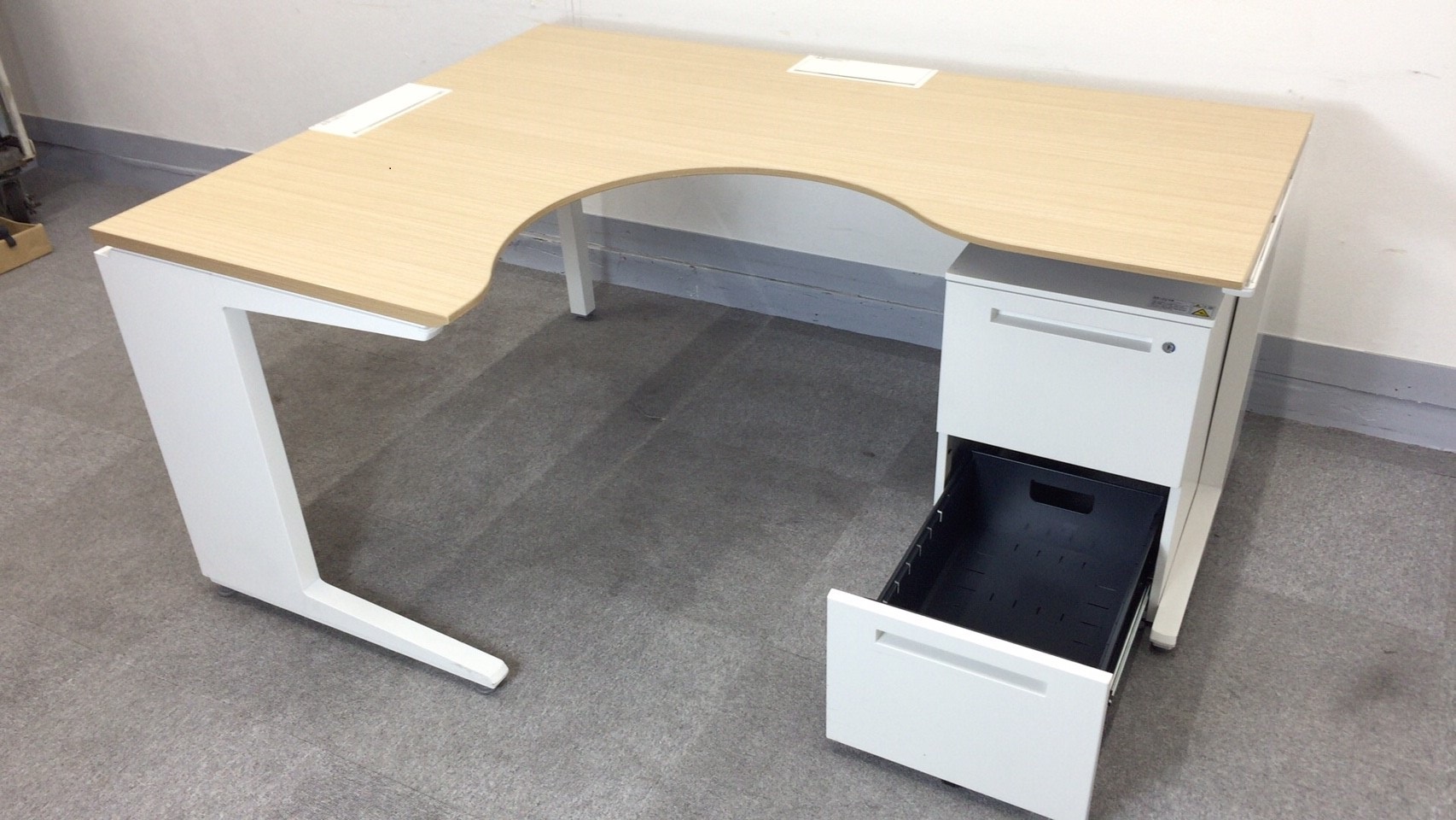 【KS】[通常単品価格44,000円がセットでお買い得!][マネジメントクラスに最適]L字デスク(左) 幅1600mm & イトーキ製 2段ワゴン キャスター付き- 茨城南店
