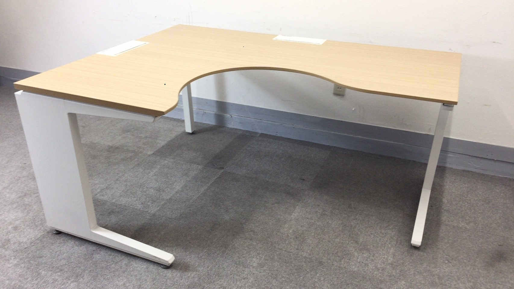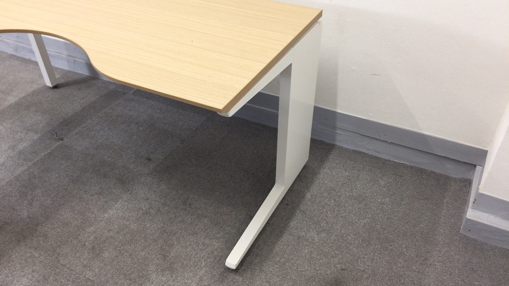 【KS】[状態良好][左手側L字デスク]マネジメント、役職者様クラスにおススメ L型デスク 天板ファインウォールナットカラー 本体ホワイトカラー- 茨城南店