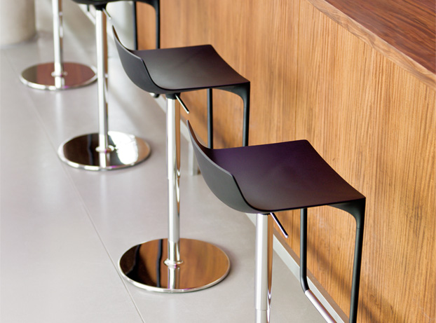 ■光り輝く、メッキの脚■マカオ,ハイチェアブラックシェル- 全店共通商品