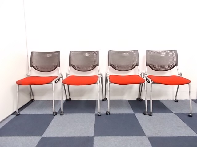 【4脚セット商品】【お買い得】【縦重ねて収納可能!】オカムラ製 プロスタック 定番のミーティングチェア!【背もたれ樹脂メッシュ!】 【専門業者によりクリーニング済み】【オススメ商品】サーキュラーバリューCO2削減量の算出について