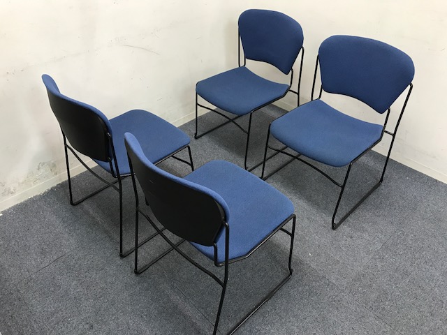 【4脚セット!】スタッキングチェア|シックなネイビー|会議用におすすめです。- 大阪・堺店