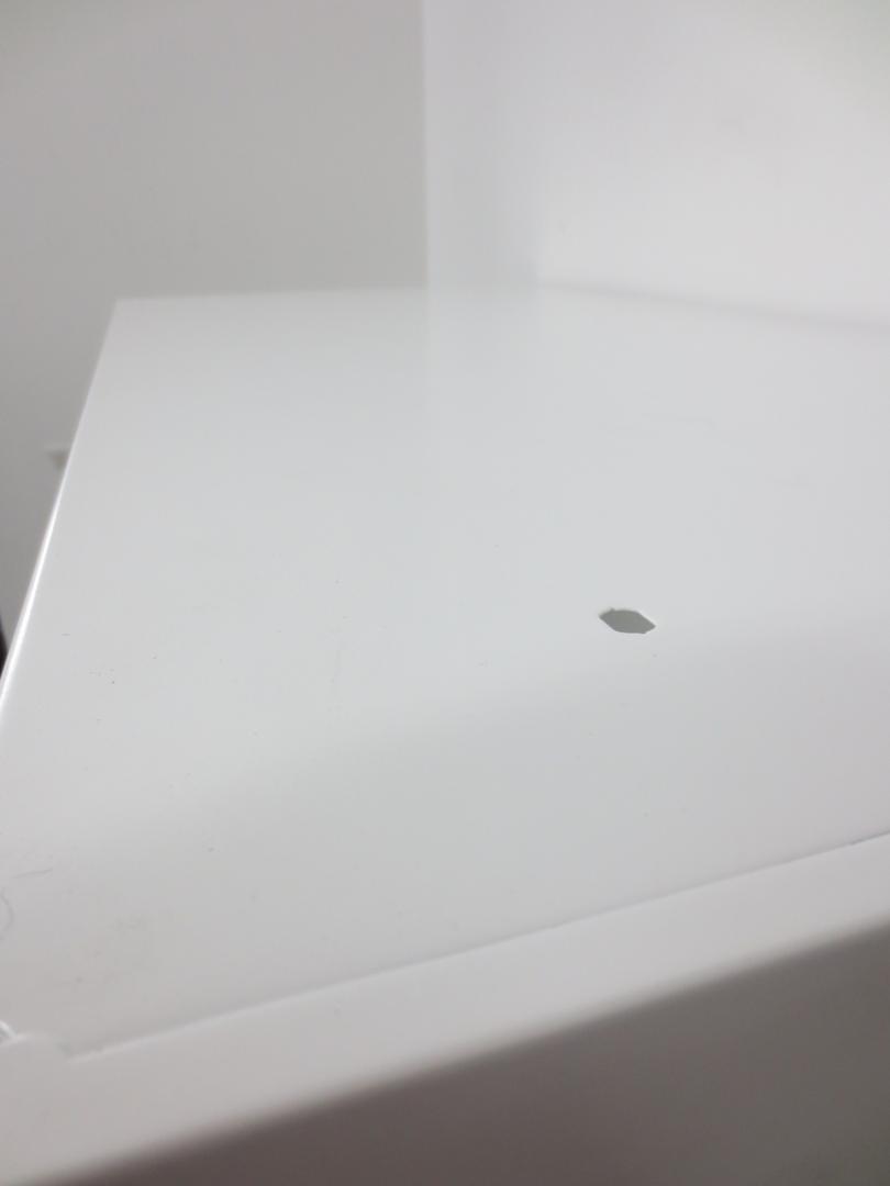 - 目立つ箇所あり傷・凹みが多数、深い傷・凹みが一部ある。(例、天板、正面、背部、サイド部分にある。)