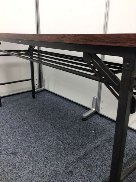 - 一部不具合あり天板歪み、アジャスター無し、キャスター使用不可ようなそのテーブルの本来の効用を果たすための機能以外の一部が使用不可な状態。(例、キャスターロッ ク機能使用不可、棚板無し等がある。)