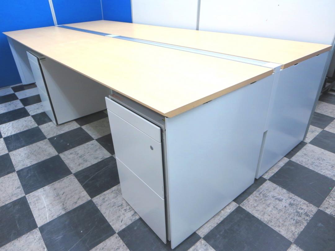 【倉庫在庫品】■4名用デスク■組立簡単!搬入もラクラク■コクヨワークヴィスタ■ナチュラル×ホワイト W3200×D1400 オフィスバスターズ 梅田本店