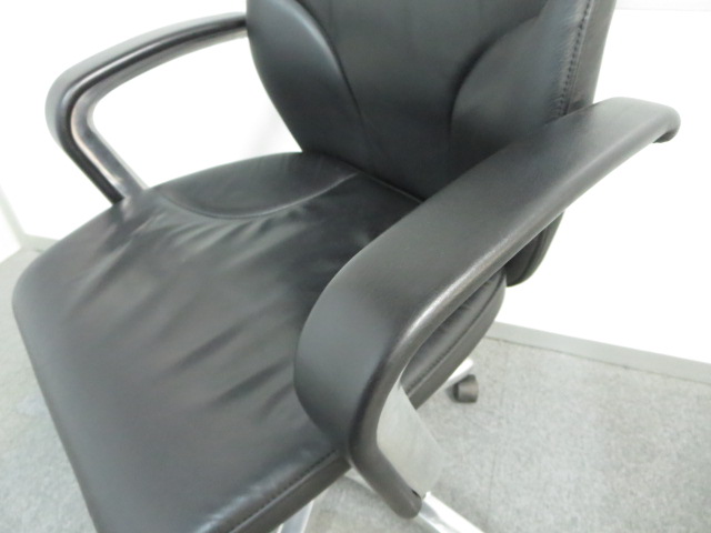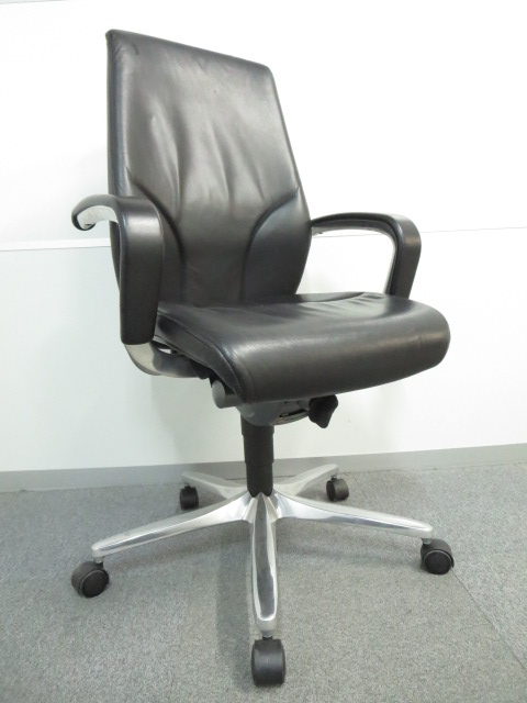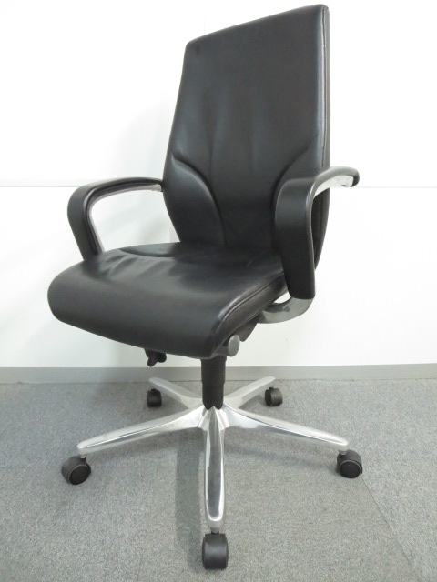【giroflex64】■ジロフレックス64チェア ブラック ■高級革張り・アルミダイキャストポリッシュ仕上げ ■人間工学に基づいた座り心地の良いエグゼクティブチェア 64-9278RCL- 川崎店