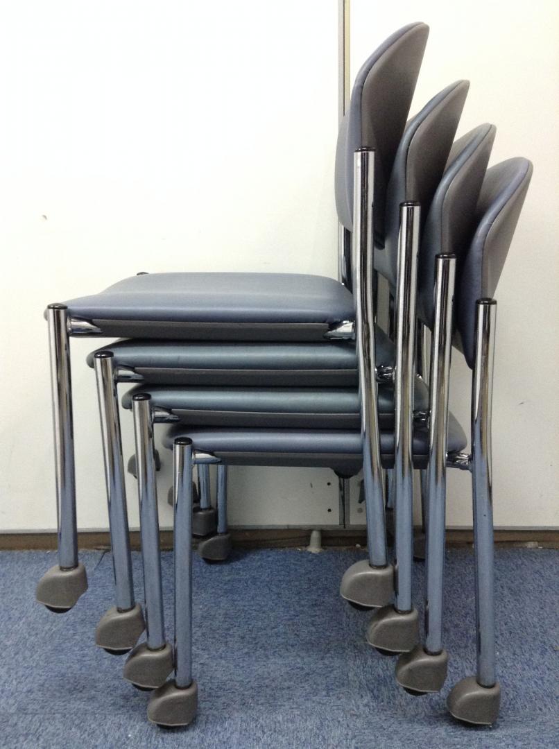 【ウチダ製】スタッキングチェア キャスター付き ネイビブルー- 京都東寺店