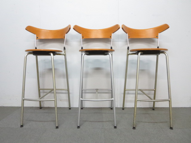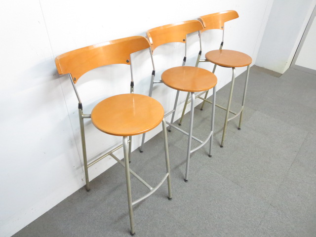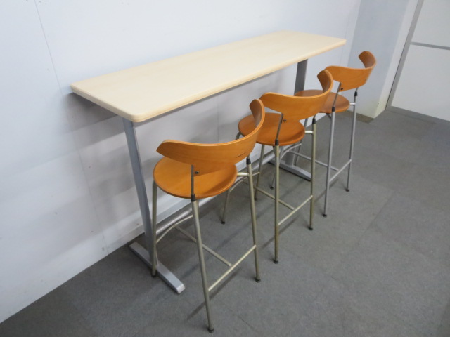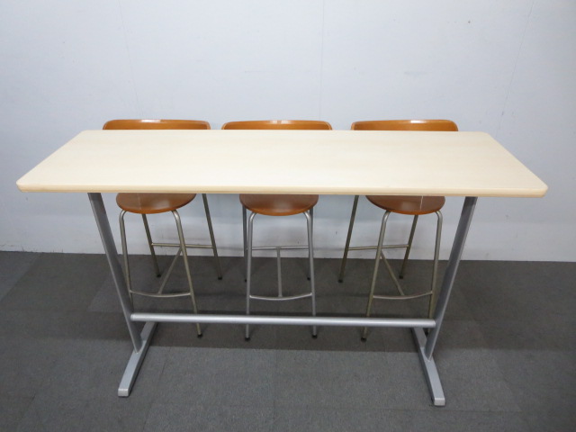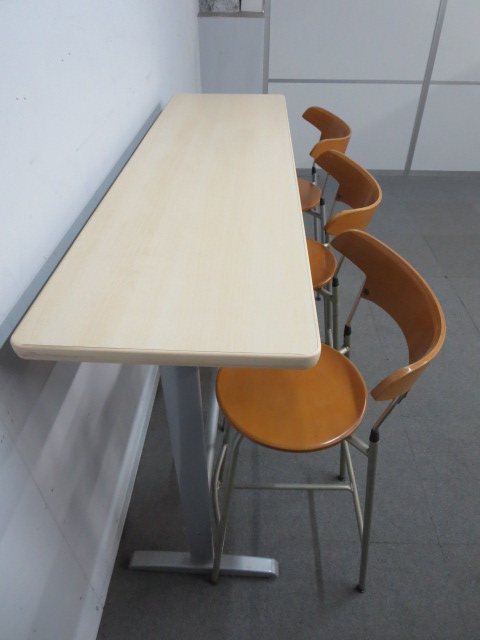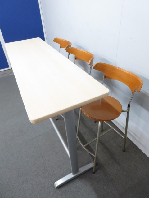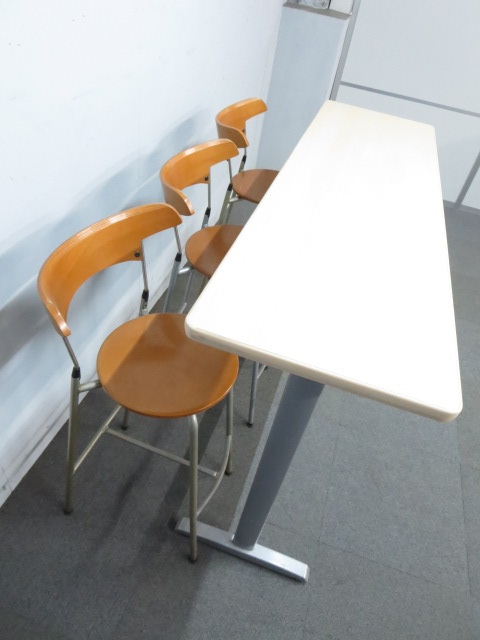 【木目デザインで癒しの空間を演出!】■ハイテーブル&カウンターチェア3脚セット ■リフレッシュスペースにオススメ!- 川崎店