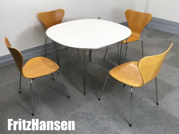 Fritz Hansen/フリッツハンセン セブンチェア 4脚セット + スーパー円テーブル 北欧 ヤコブセン- デザイナーズ家具センター