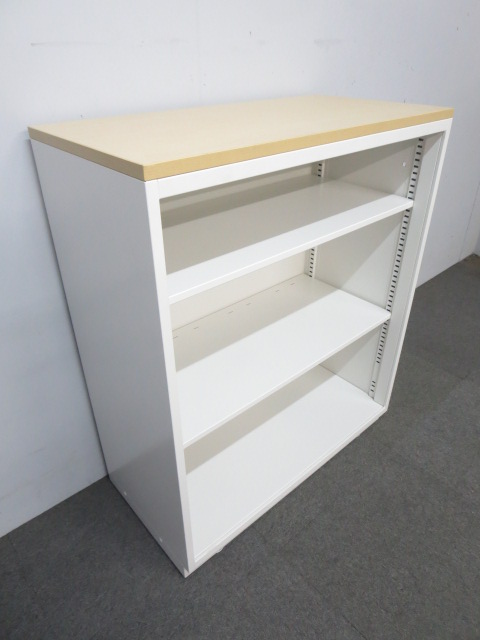 ■受付用ハイカウンター ■ホワイトカラー・木目天板付 ■イトーキ製 シンラインシリーズ オープン書庫- 川崎店