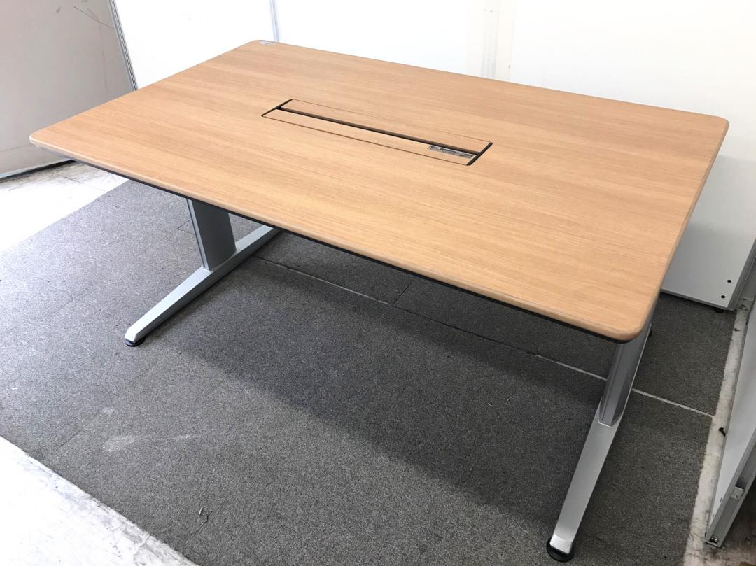 【状態良好】【4名様でのご使用がおすすめ!】流行の木目!オカムラ製ミーティングテーブル!【配線タップ付】- 在庫数