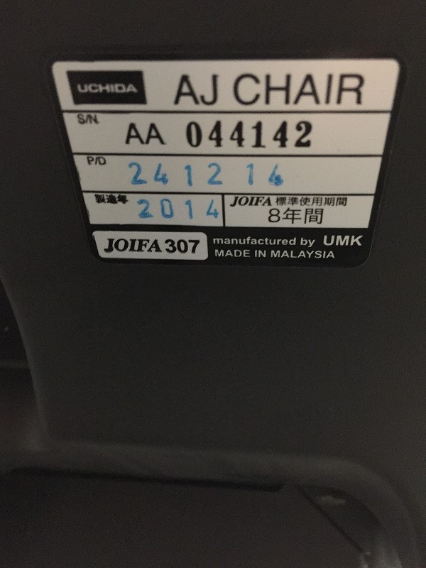 【中古】 AJチェア ウチダ/UCHIDA 肘付ハイバックチェア 199796