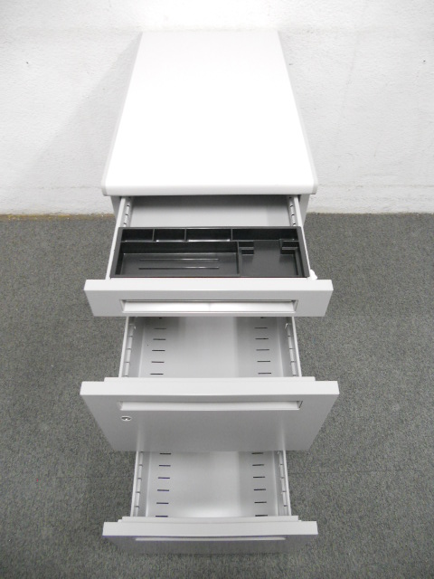 最上段はペントレー引き出し付き、2段目・3段目はA4サイズのファイル書類が収納できます。