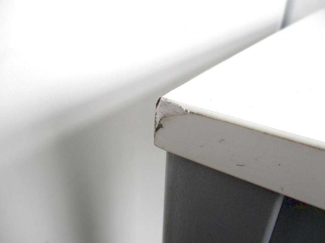 - あり黄ばみ・変色が広い範囲にうっすらある、または濃い黄ばみ・変色が一部ある。(例、天板、幕板、棚板、サイド部分、脚部等にある。)