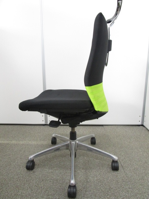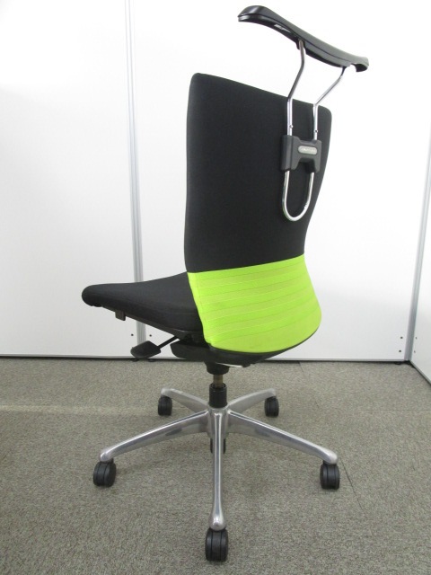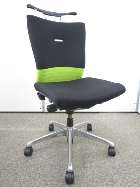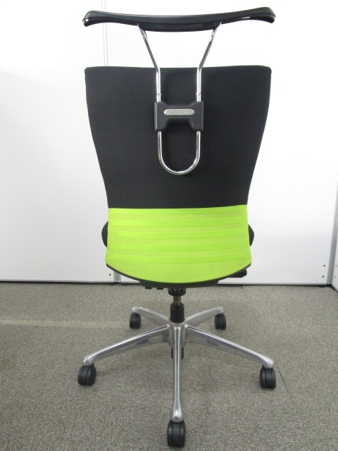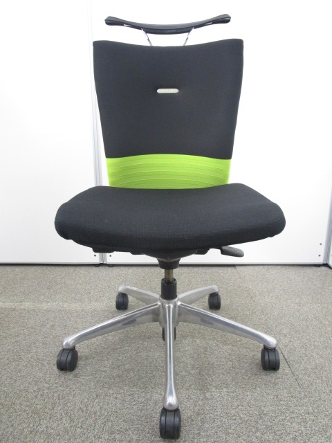 オカムラ製 フィーゴ シームレスタイプ ブラック×ライトグリーン【機能とデザインを兼ね備えたチェア】肘外し