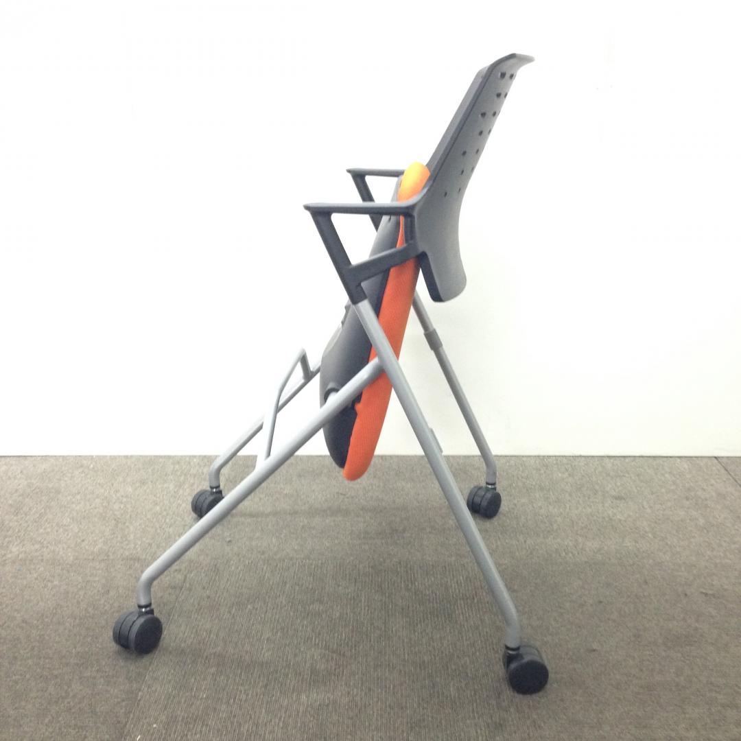 座面を跳ね上げる事で積み重ねる事が可能です。