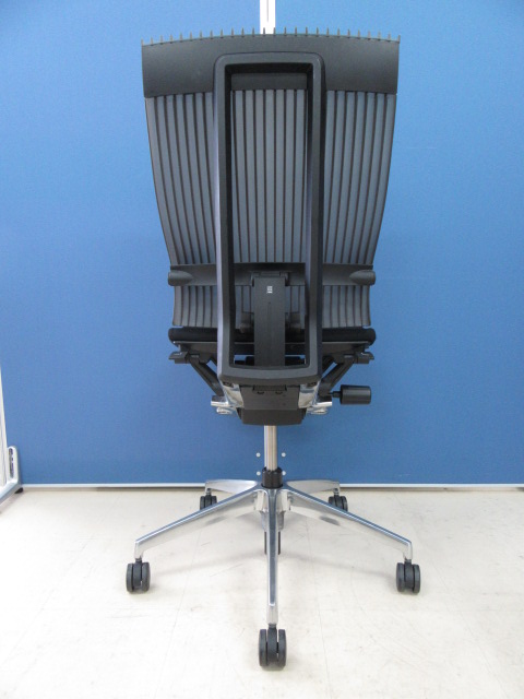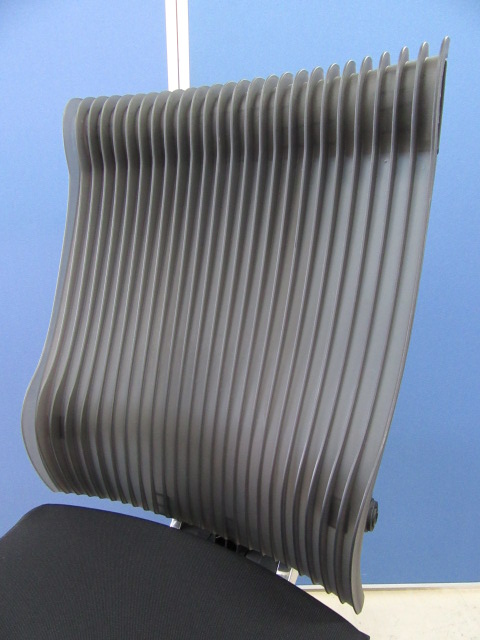 見た目は少し硬そうに見えるエラストマー素材ですが、座ってみると程よいしなり具合のやわらかな座り心地で、背中が痛くなるようなことはまるでありません。面ではなく線で支えることで、背面の通気性の良さは抜群です。