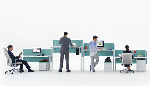 デスクの天板を自由&スピーディに上下昇降させることで、フィジカルにもメンタルにも、最適なポジショニングを。多様化したオフィスに、フレキシブルな一台。いま、働き方の常識が変わります。