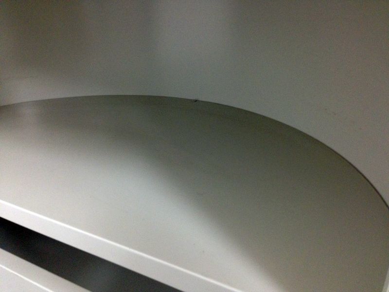 - 一部不具合あり天板歪み、引出開閉不可、アジャスター無し、施錠不可のようにそのカウンターの本来の効用を果たすための機能以外の一部が使用不可な状態。(例、引出が 開閉しづらい等がある。)