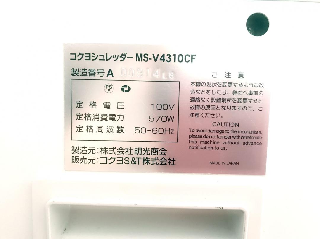 【中古】 MS-4310MU-AT 明光商会 シュレッダー 200351