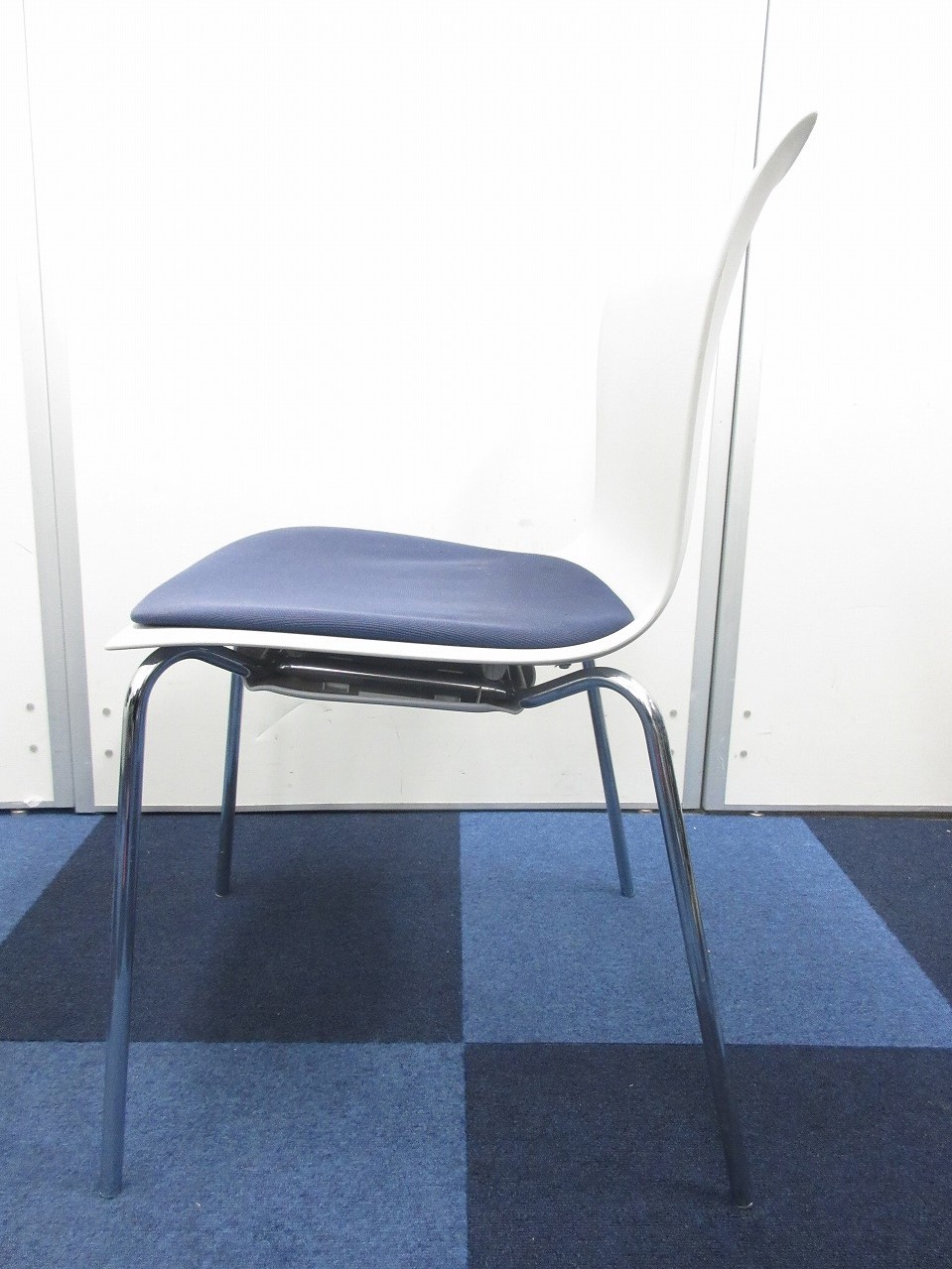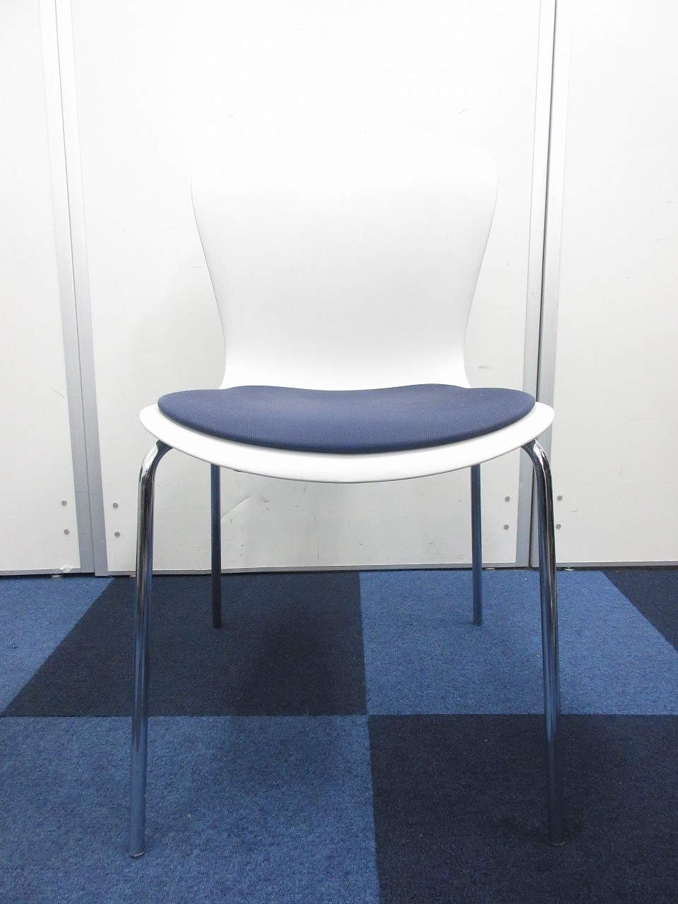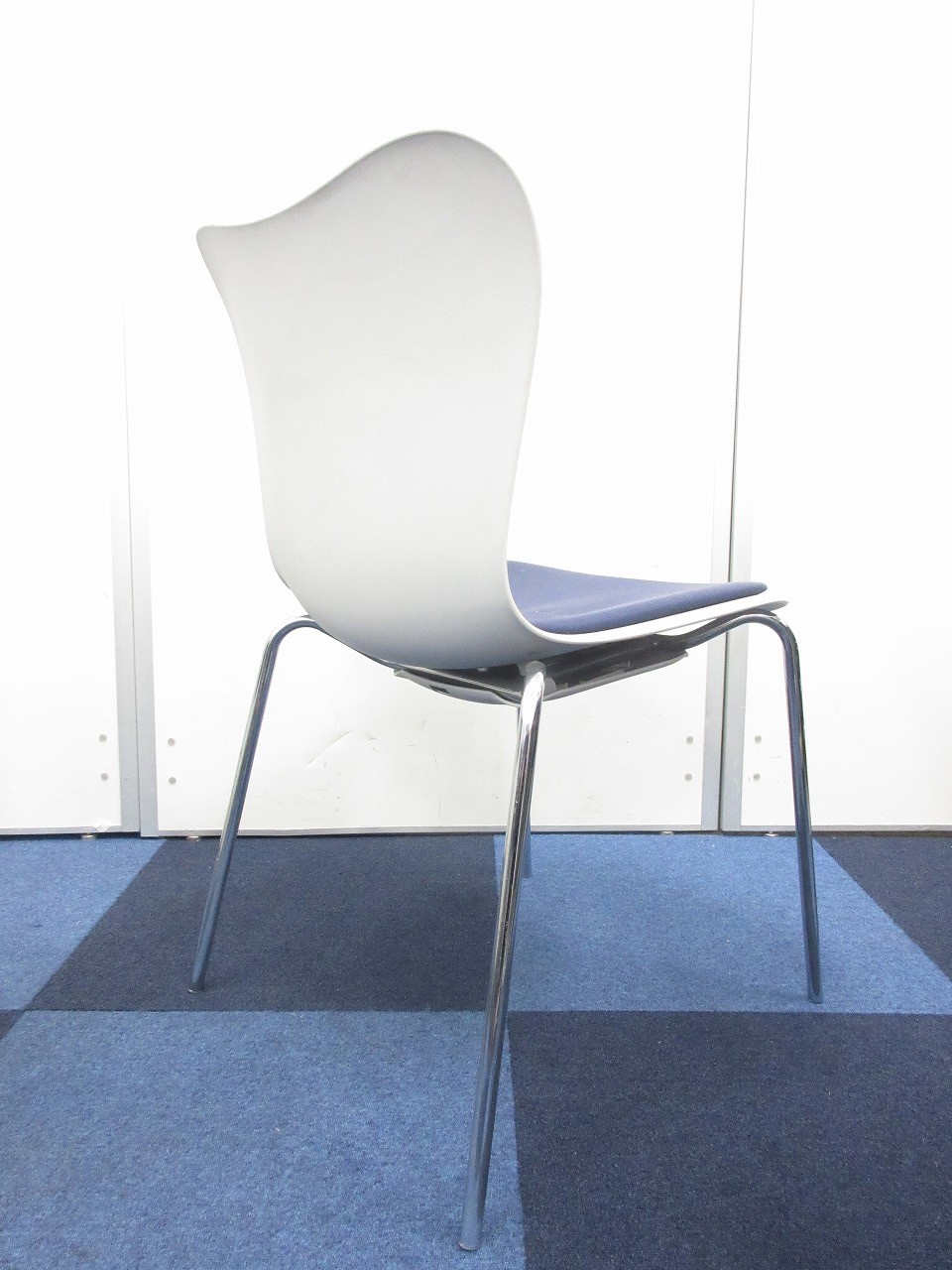 【重ねて収納可能!!】綺麗なホワイトにブルーの座面のスタッキングチェアが入荷!- 在庫数