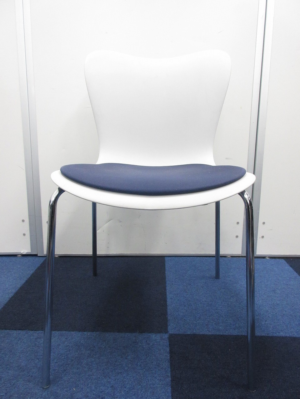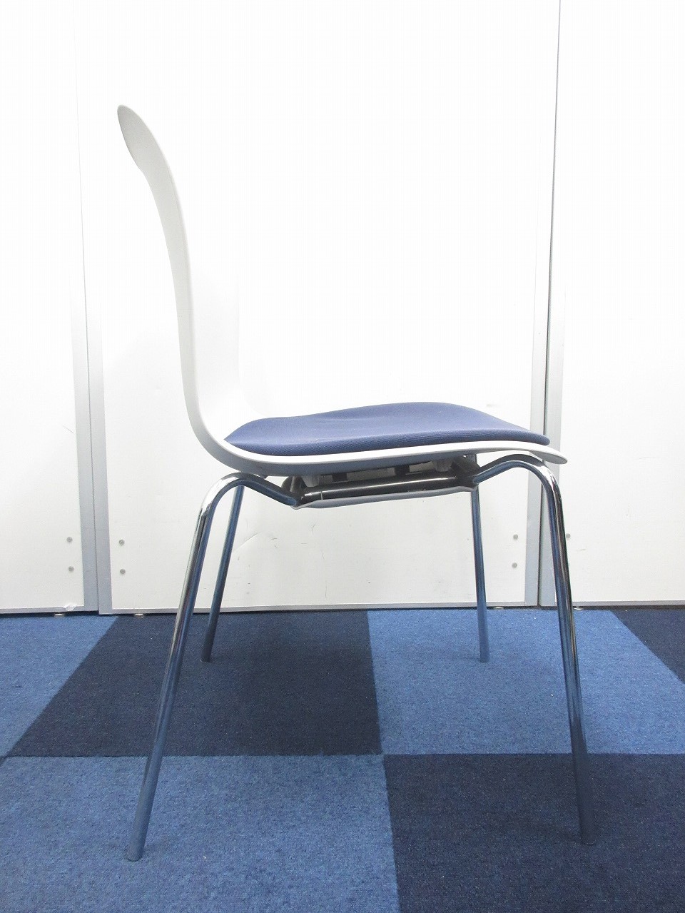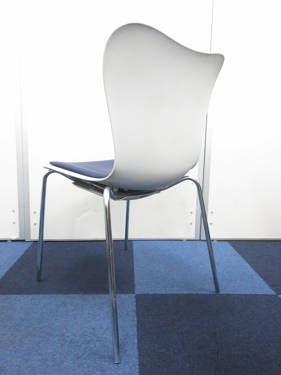 【重ねて収納可能!!】綺麗なホワイトにブルーの座面のスタッキングチェアが入荷!- 在庫数