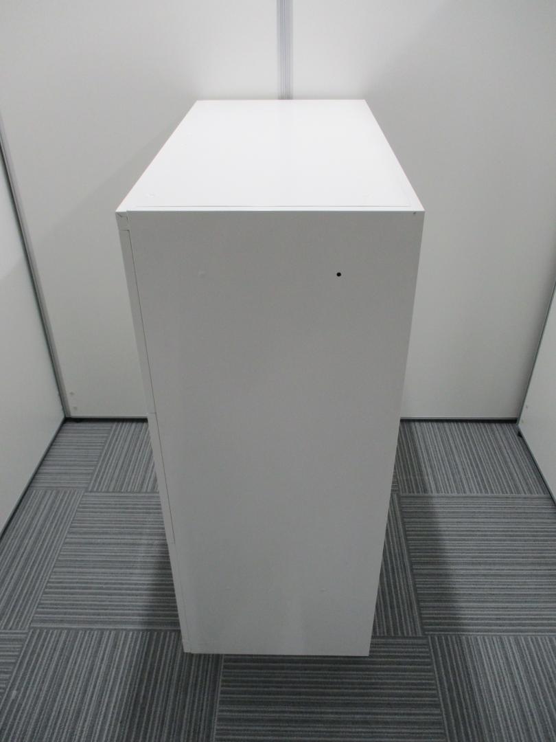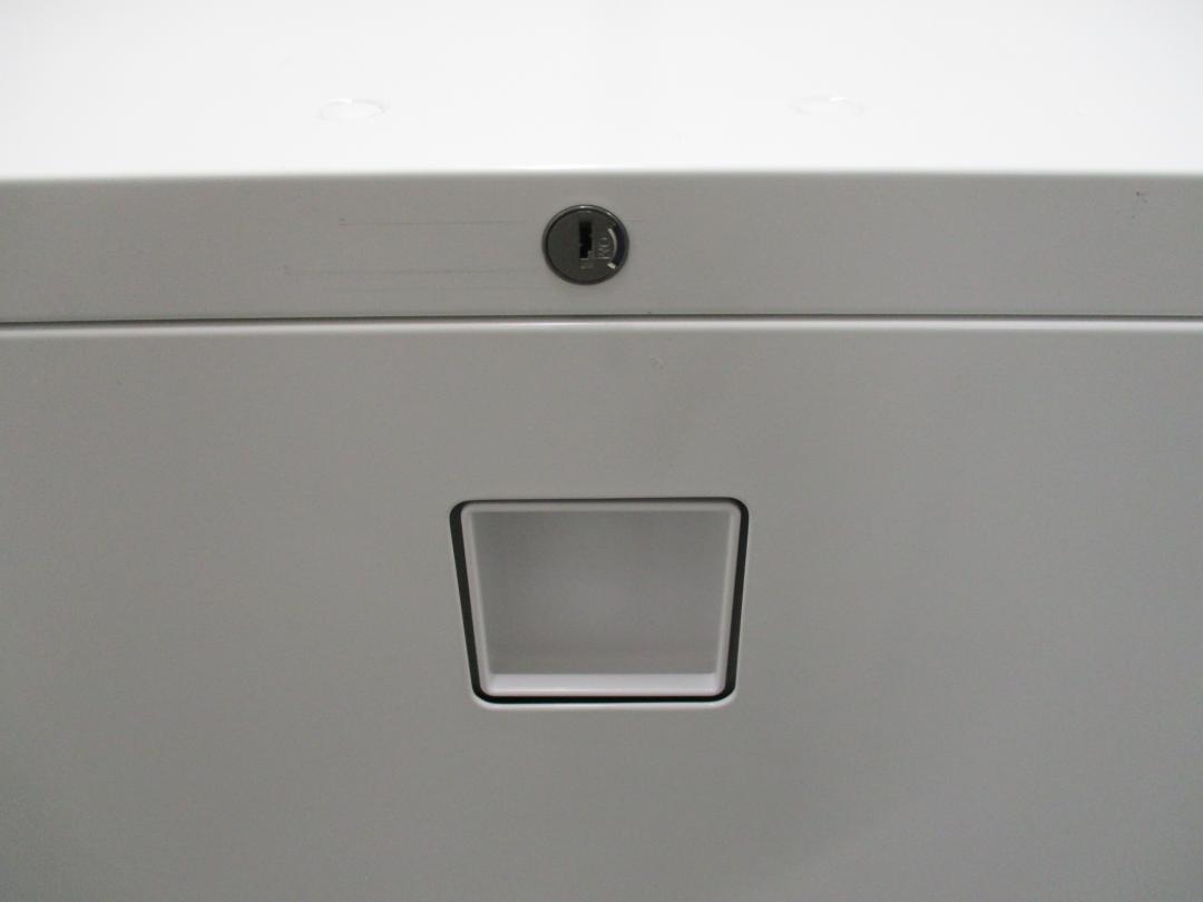 オカムラ レクトライン 3段ラテラル書庫 ホワイト天板 シリンダー錠 鍵付き ※取っ手部分に若干日焼けあり