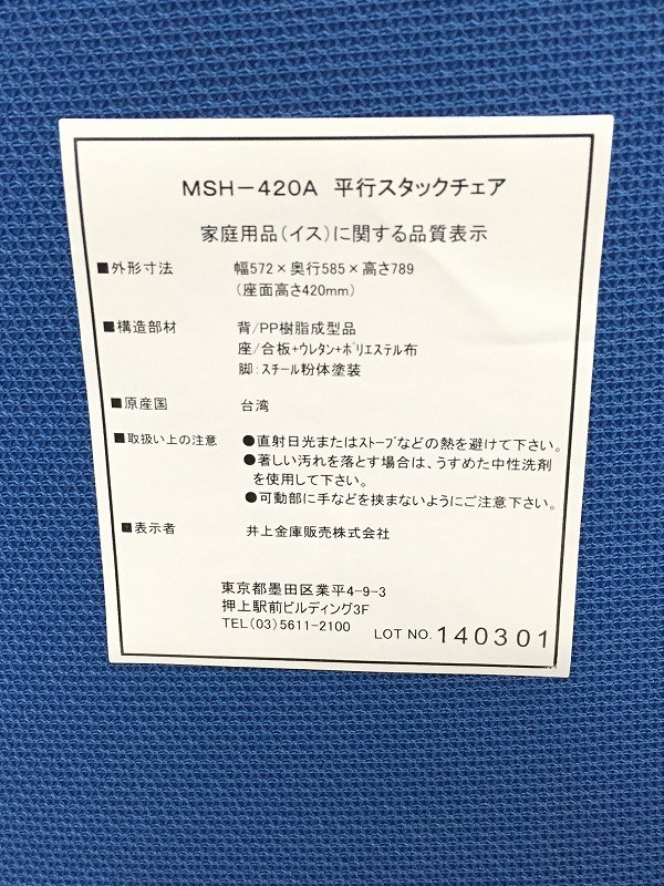 【中古】 MSH-420A 井上金庫 ミーティングチェア 200509