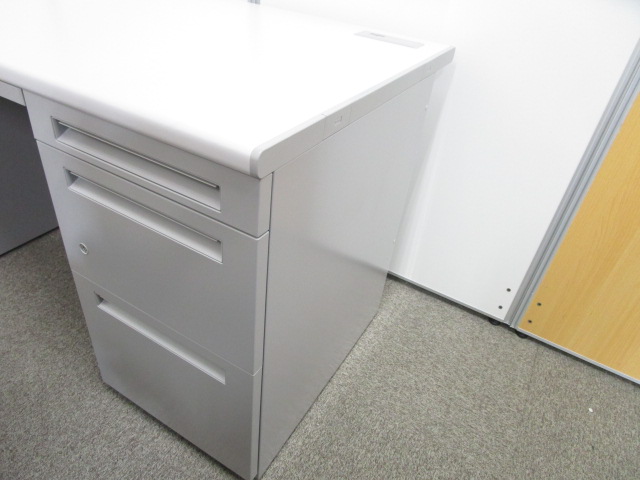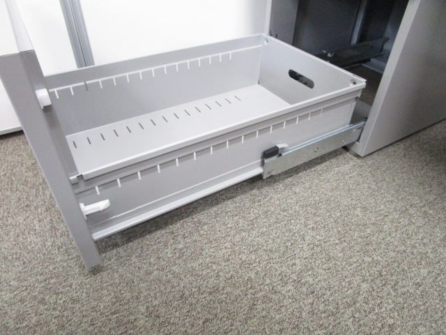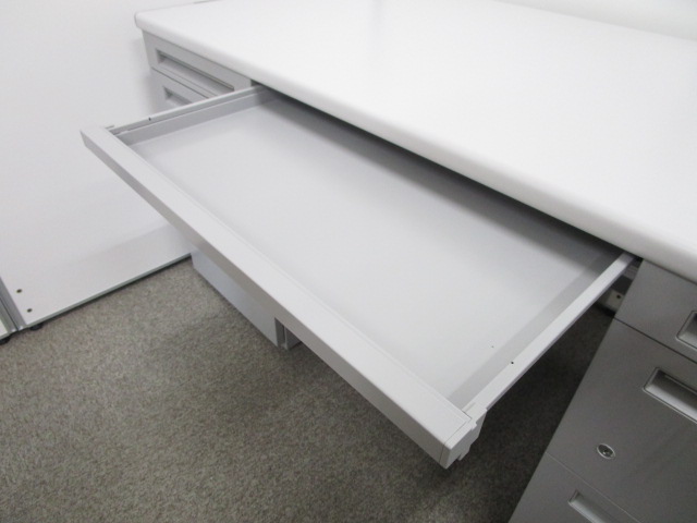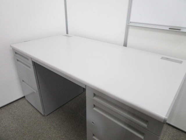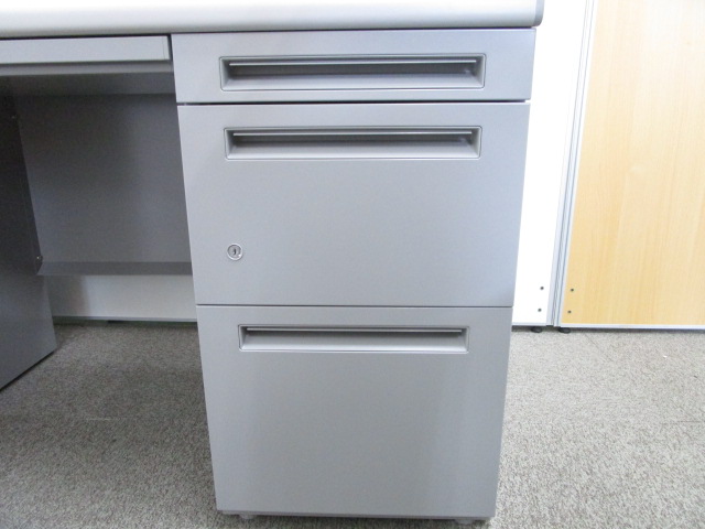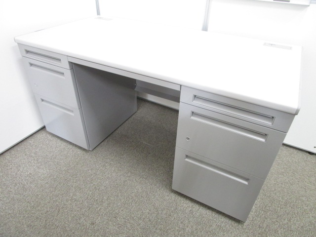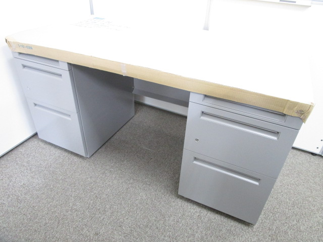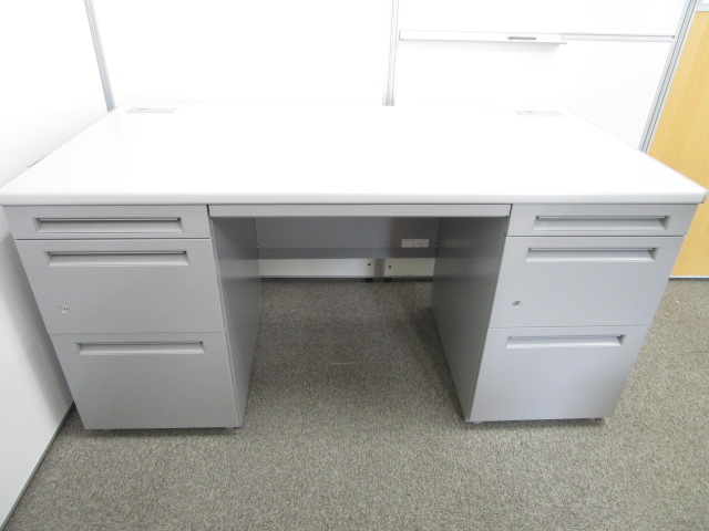 ★新古品★鍵やペントレー等の部材完備品★上長席にはコレ!★書類を大量収納可能なデスクが入荷致しました! 両袖机|グレー- 池袋店