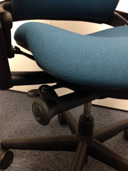 - 深く座りたい人など利用者にあった形で座面が前後45mm範囲で調整できるので、腰の負担を軽減します。