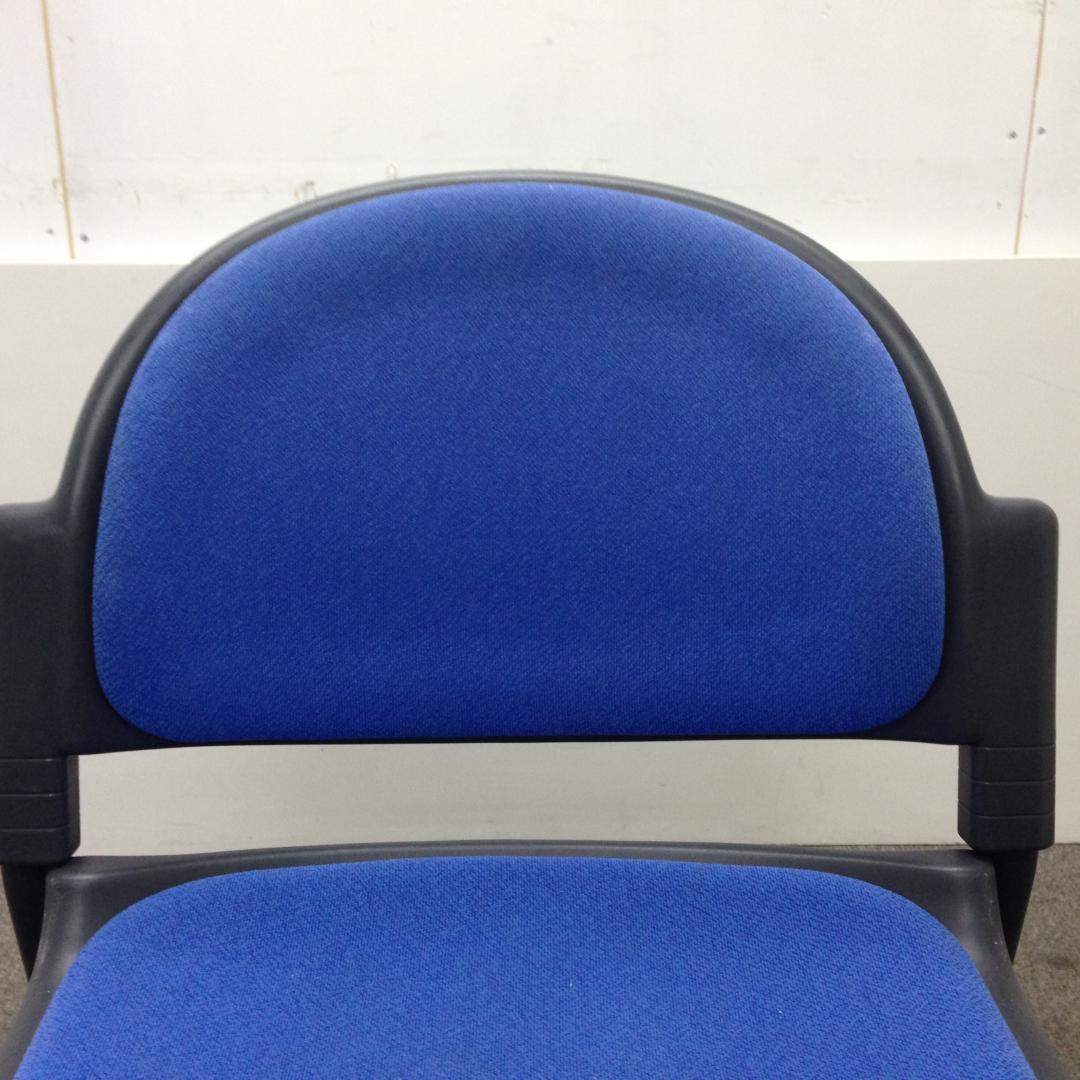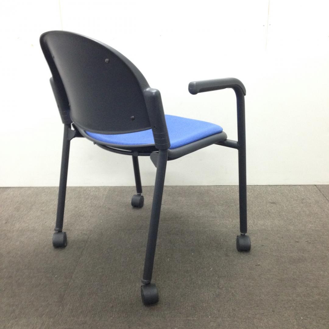 【セミナーや会議などに!】プラス製|ブルーの肘付スタッキングチェア!- 豊中・尼崎店