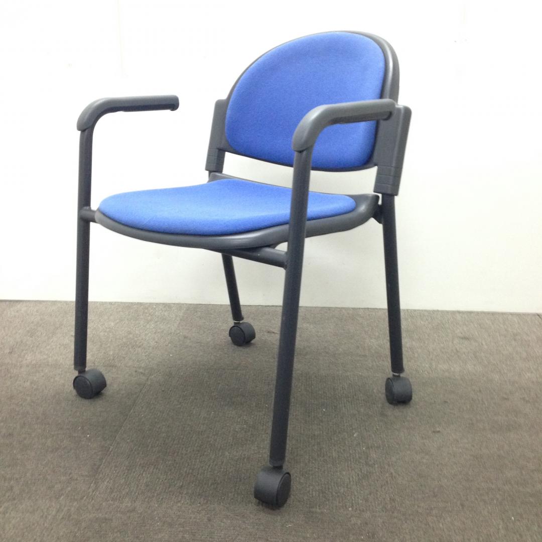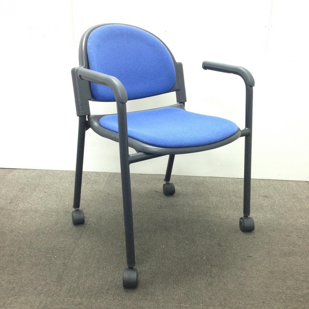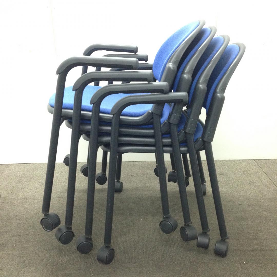 【セット商品】プラス製|ブルーの肘付スタッキングチェア!- 豊中・尼崎店