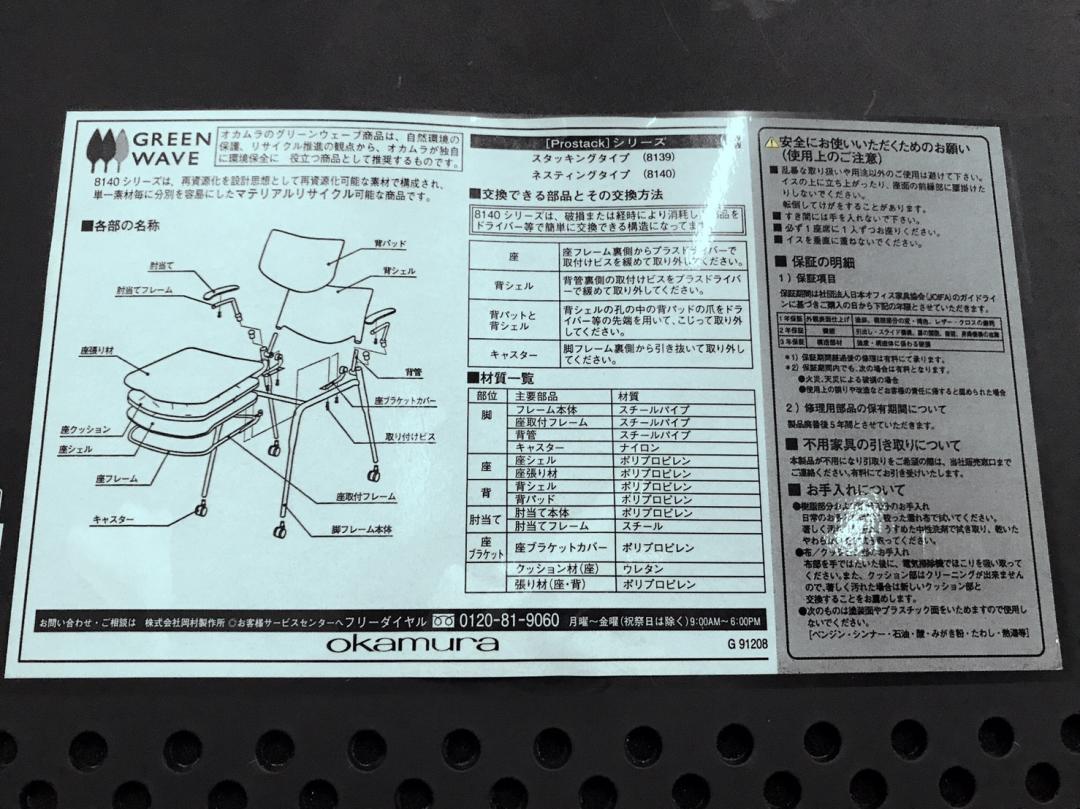 【4脚入荷】オカムラ(okamura)プロスタックチェア スタッキングタイプ ■色:座面グレー【2509】弊社使用欄【A01034926】