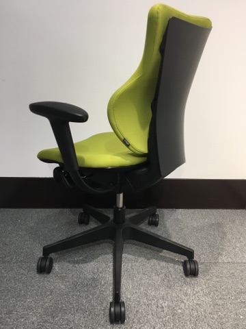- 女性の作業姿勢に多く見られる2つの姿勢を、美しく支える背もたれ形状です。後傾しても背のラインを崩しません。