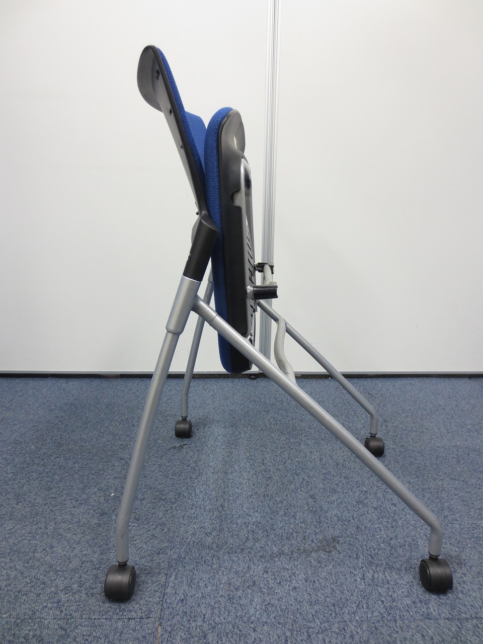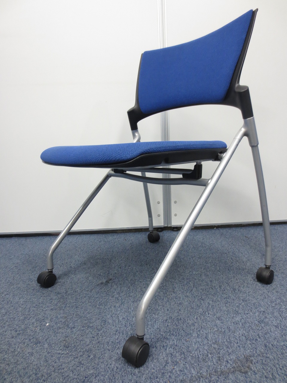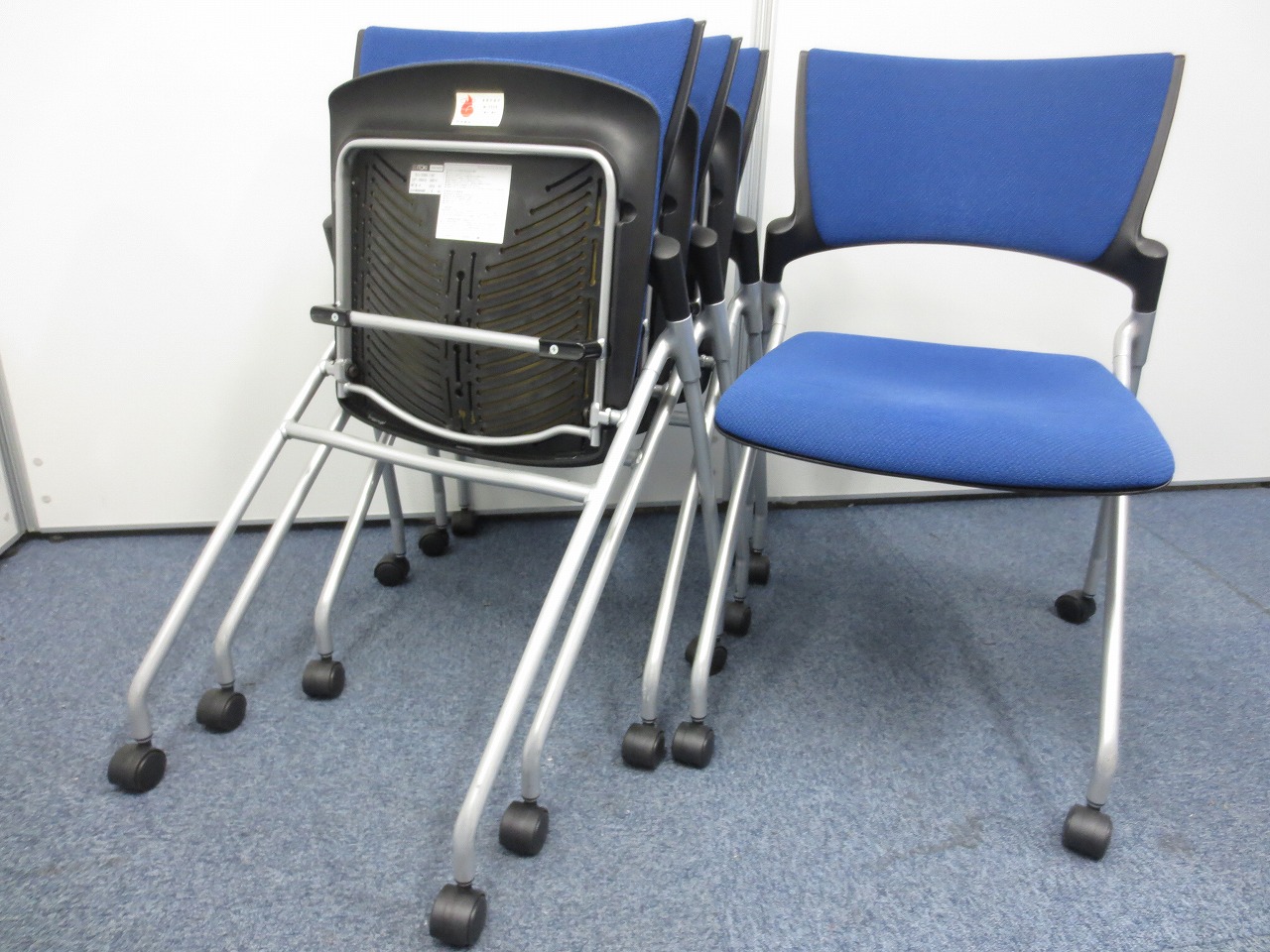 【定価6万円】【ソフトベンディングシェルが背を優しく受け止める!】■イトーキ(ITOKI) マノスチェア(MANOSS) 肘無し スタッキングチェア ミーティングチェア ■背パッド付 ■キャスター脚 ■ブルー
