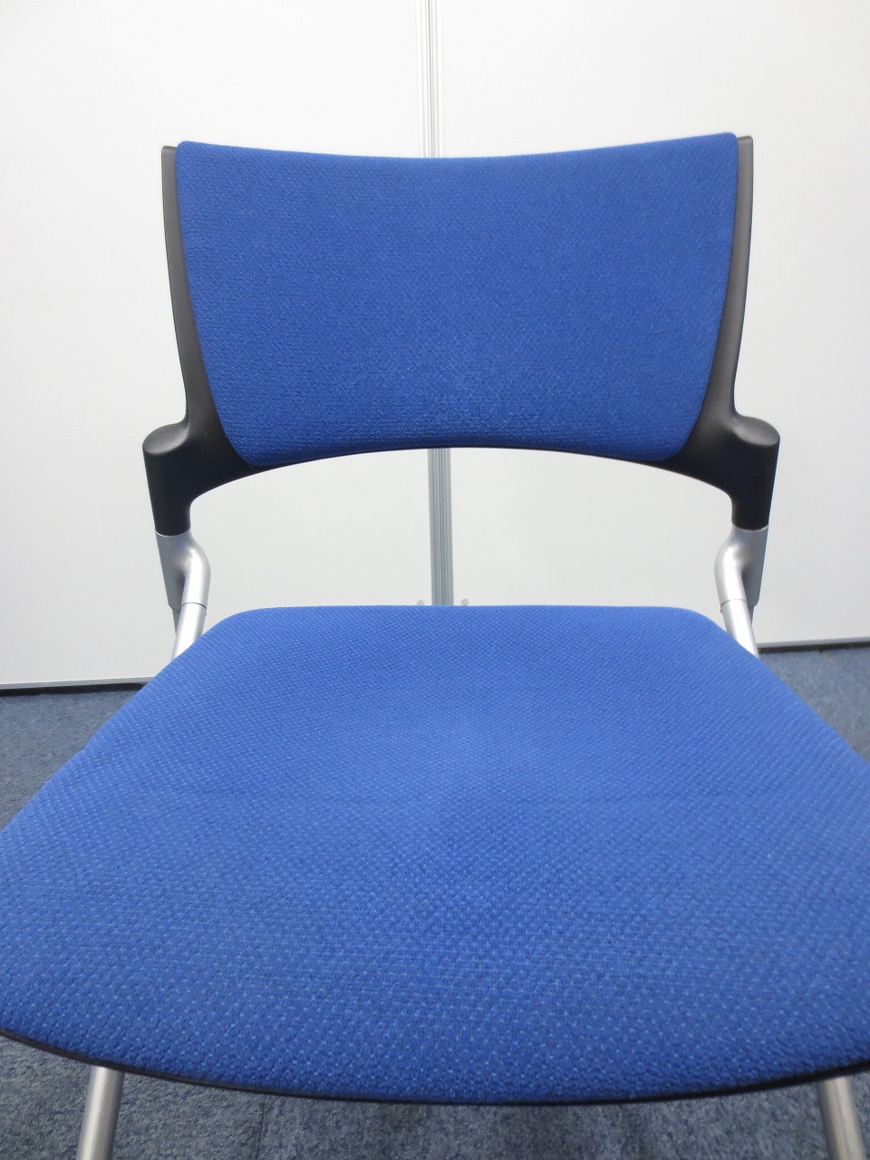 【定価6万円】【ソフトベンディングシェルが背を優しく受け止める!】■イトーキ(ITOKI) マノスチェア(MANOSS) 肘無し スタッキングチェア ミーティングチェア ■背パッド付 ■キャスター脚 ■ブルー