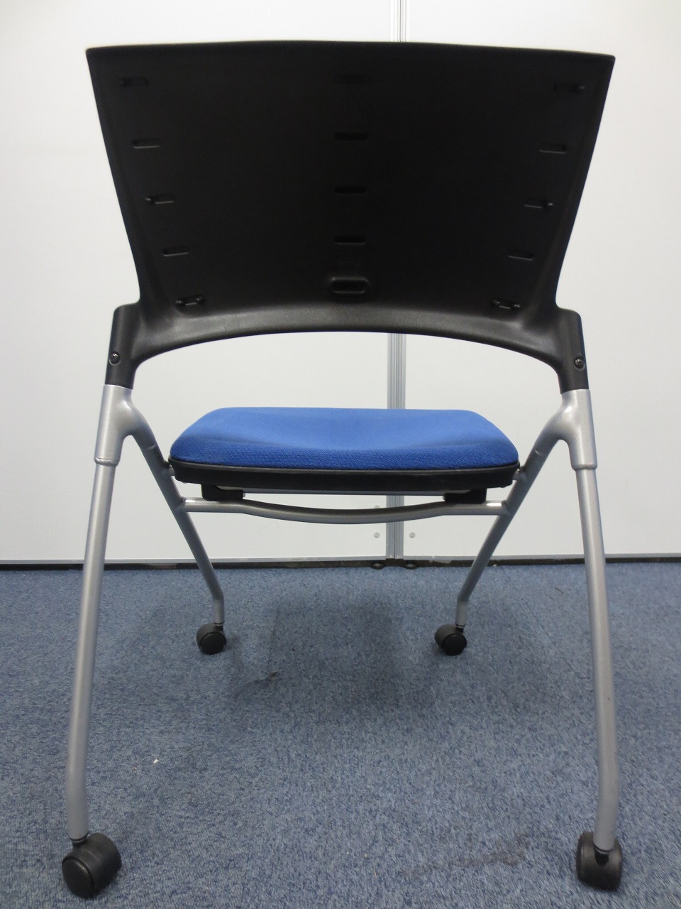 【定価6万円】【ソフトベンディングシェルが背を優しく受け止める!】■イトーキ(ITOKI) マノスチェア(MANOSS) 肘無し スタッキングチェア ミーティングチェア ■背パッド付 ■キャスター脚 ■ブルー