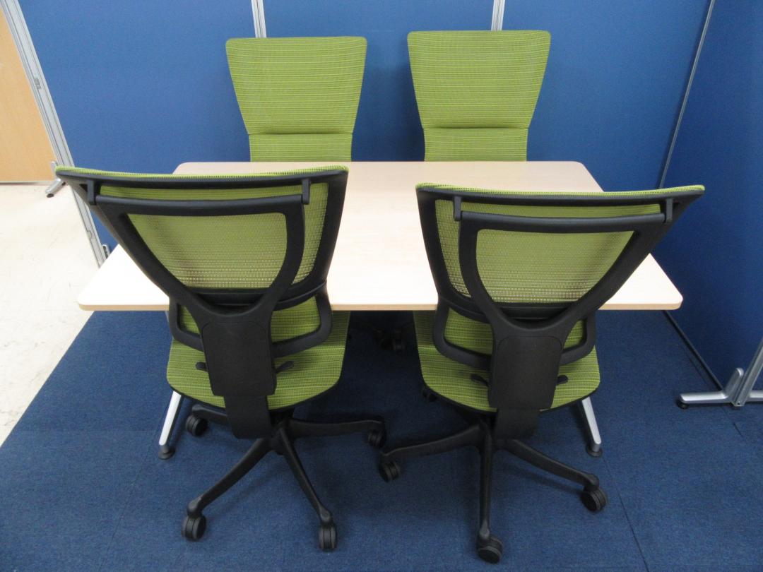[単品購入¥75,000⇒セット購入¥65,000]イトーキ 会議テーブル+エルゴヒューマン スマートチェア4脚セット■今トレンドのナチュラル×ライトグリーンの組み合わせ!! #お洒落好き- 足立・葛飾店