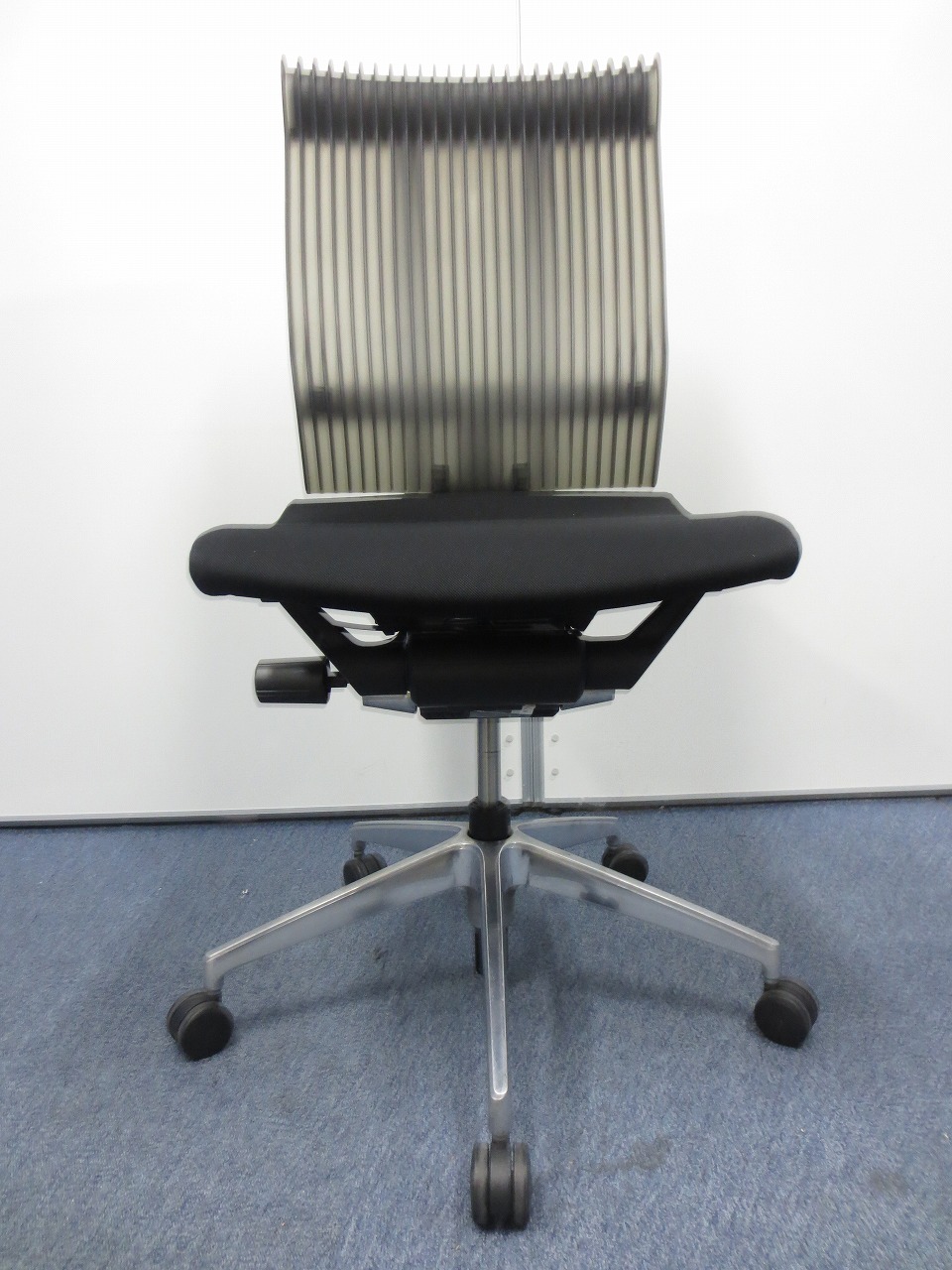 見た目は少し硬そうに見えるエラストマー素材ですが、座ってみると程よいしなり具合のやわらかな座り心地で、背中が痛くなるようなことはまるでありません。面ではなく線で支えることで、背面の通気性の良さは抜群です。