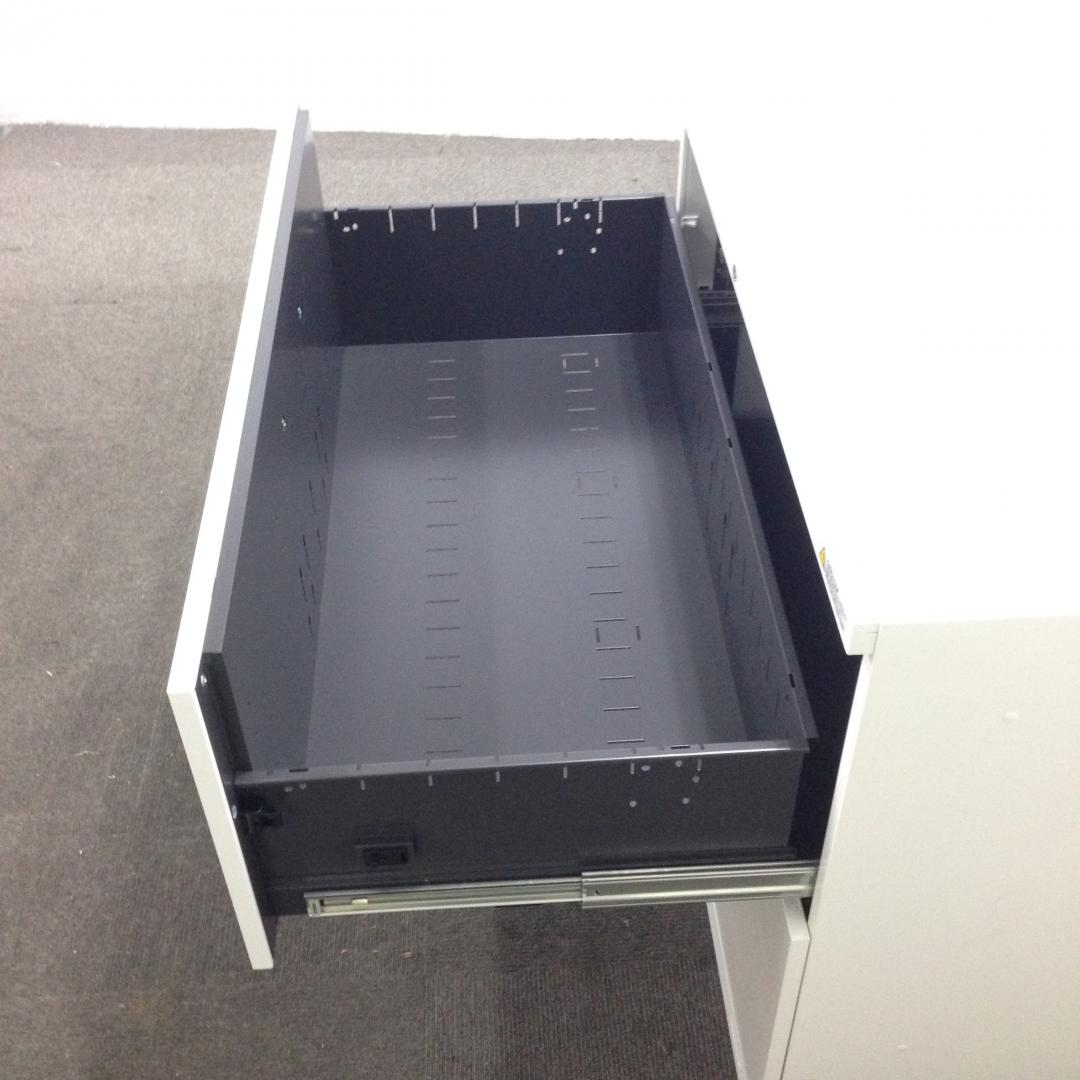 【オフィスの必需品!大容量の三段キャビネット!】■オカムラ(okamura)製 レクトラインシリーズ 3段ラテラル ローキャビネット ■天板/ベース付 ■シリンダー錠 ■ホワイト 【弊社使用欄:A01037187】